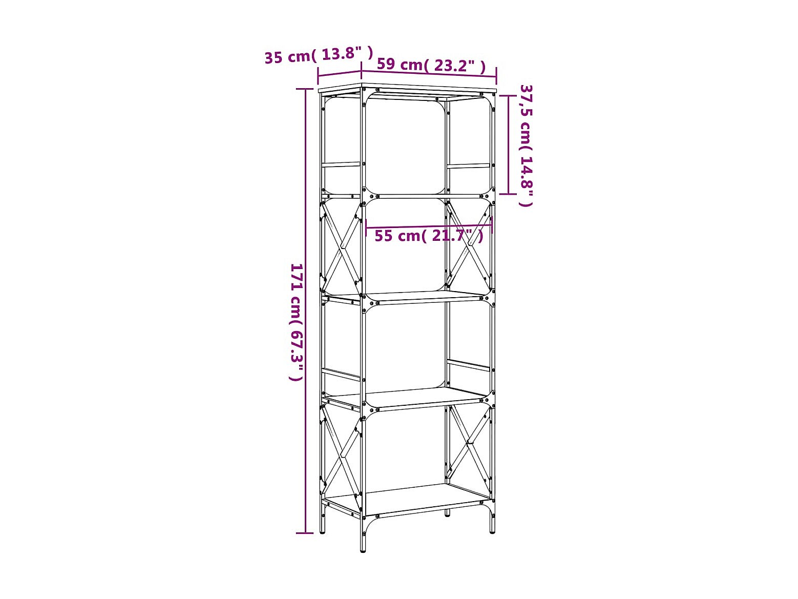 Uusikaupunki Boekenkast 5-laags 59x35x171 cm bewerkt hout bruin eikenkleur