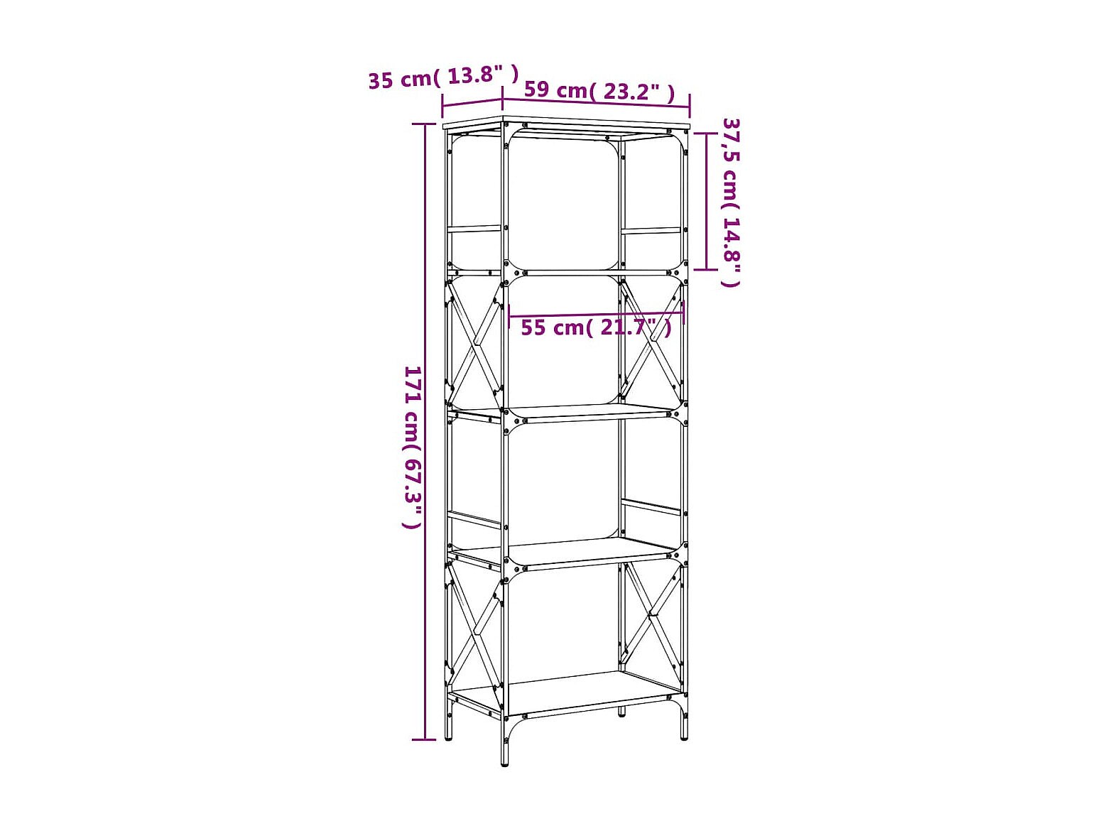 Uusikaupunki Boekenkast 4-laags 59x35x132 cm bewerkt hout zwart