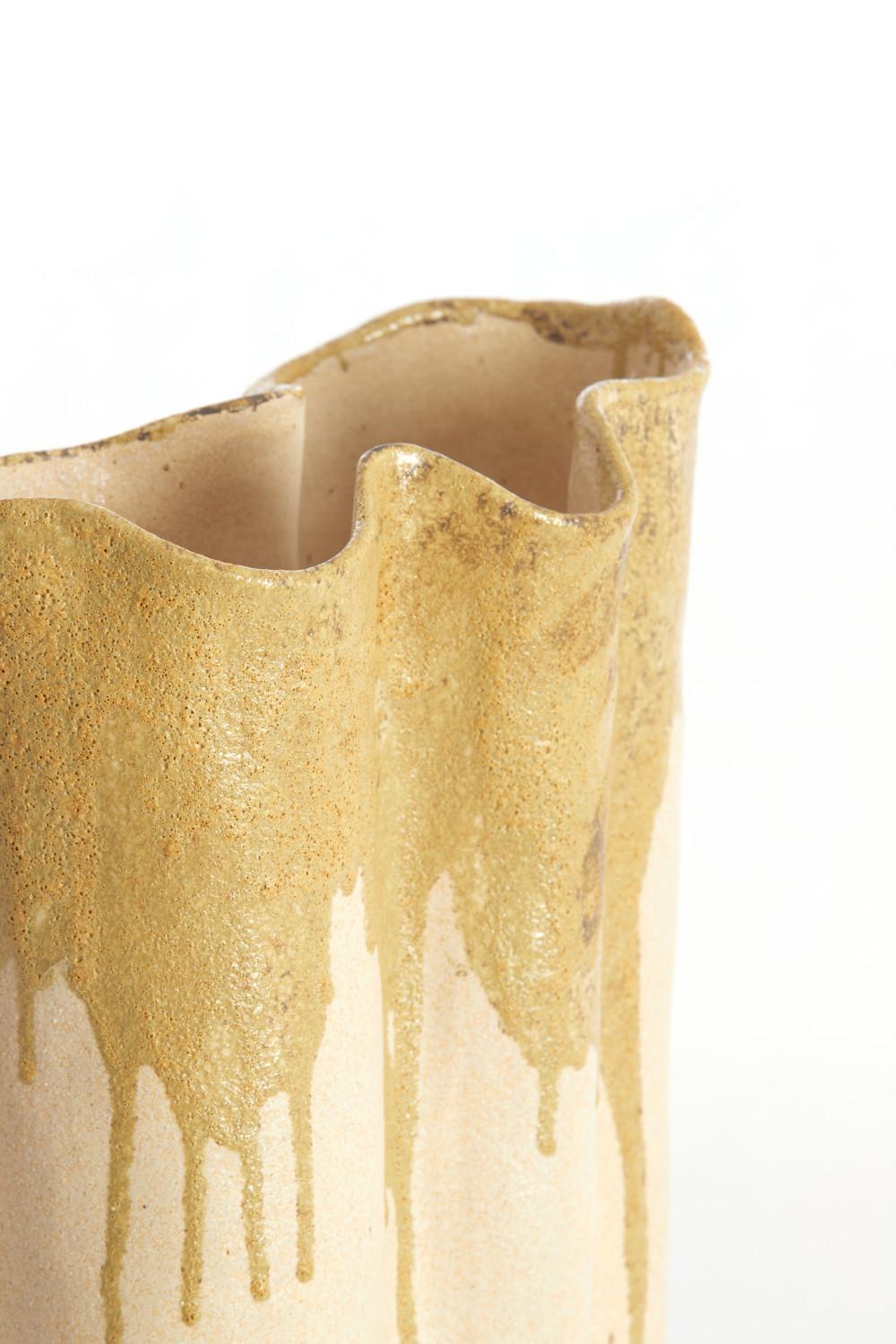 Vaas deco 12x9,5x30 cm FLOVILLA keramiek crème+olijf groen is gemaakt en ontwerpen door het Nederlandse merk Light & Living.