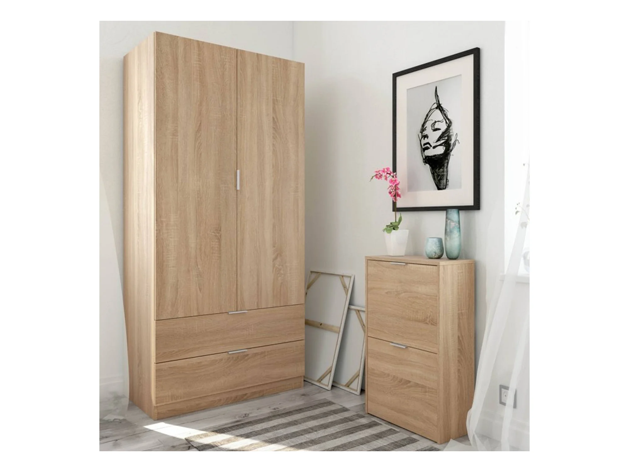 Valdosta schoenenrek, Ruimtebesparend schoenenrek met 2 deuren, Ingang schoenenrek, Schoenenrek kledingkast, 50x22h76 cm, Eiken