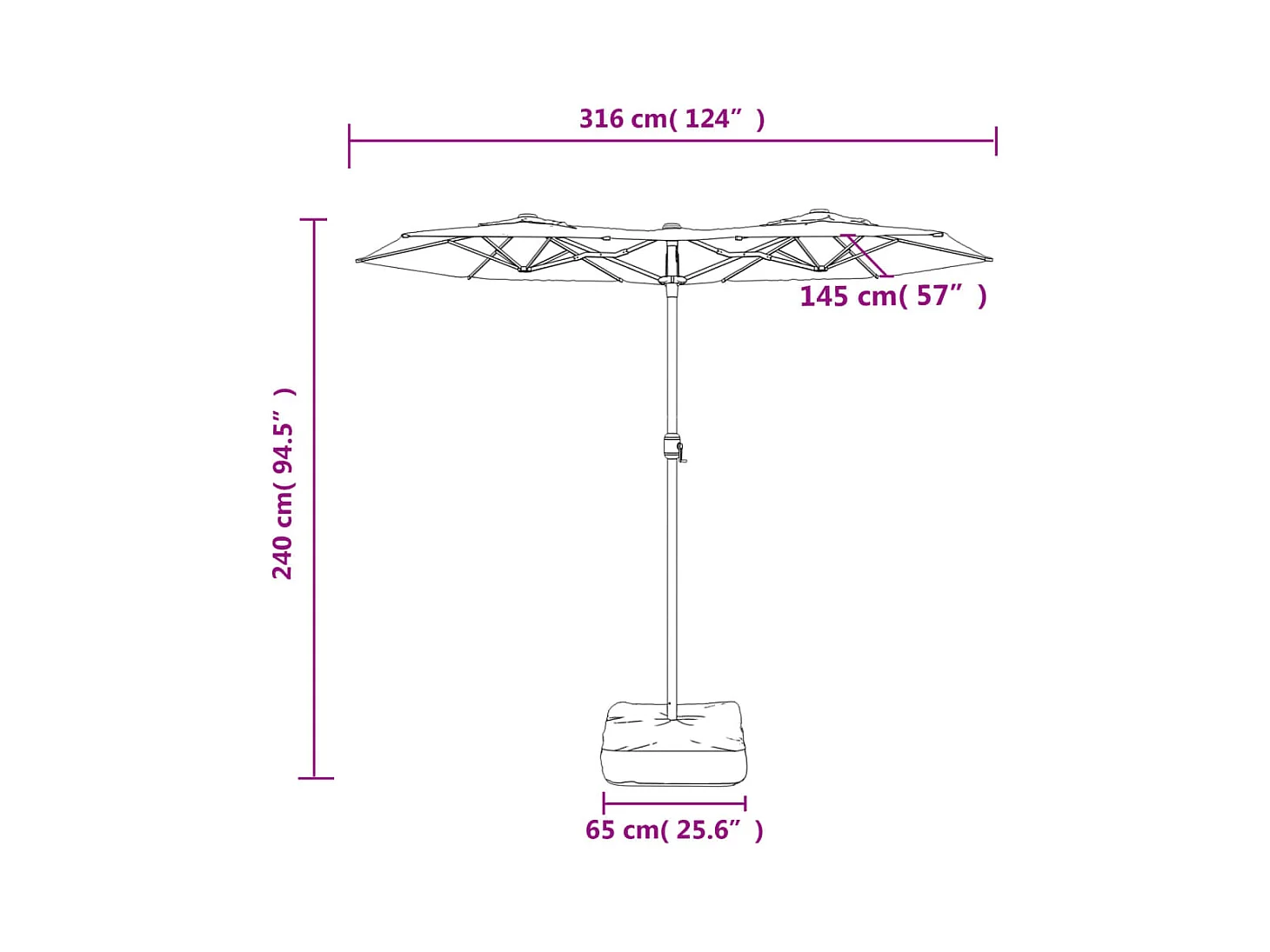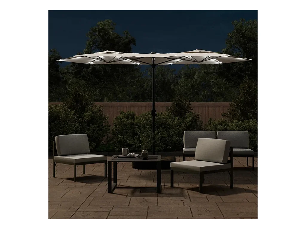 Vanyra Parasol dubbel dak met LED 316x145 cm zandwit