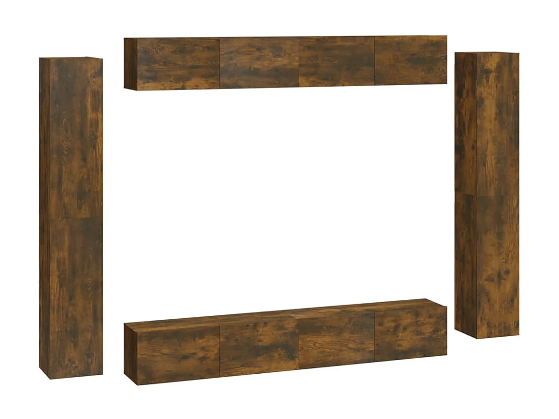 Varde 8-delige Tv-meubelset bewerkt hout gerookt eikenkleurig