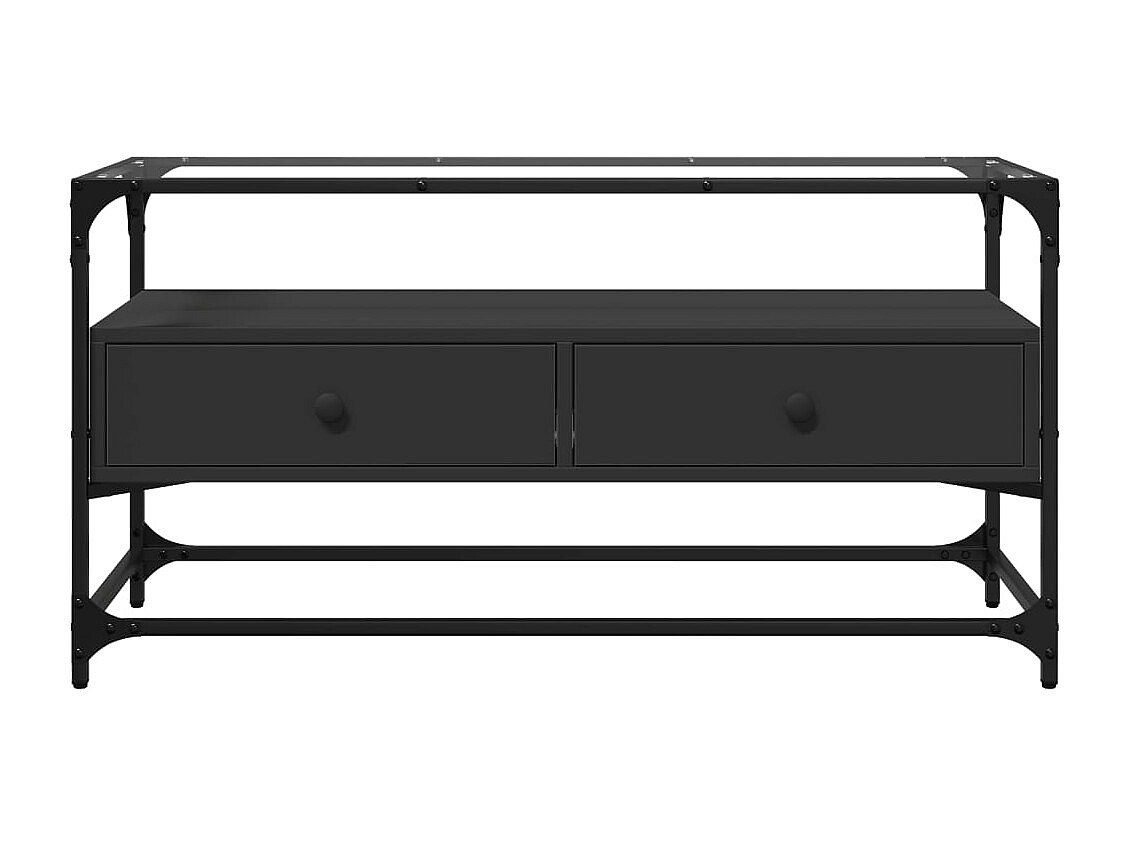 Varel Tv-meubel met glazen blad 98x35x51 cm bewerkt hout zwart