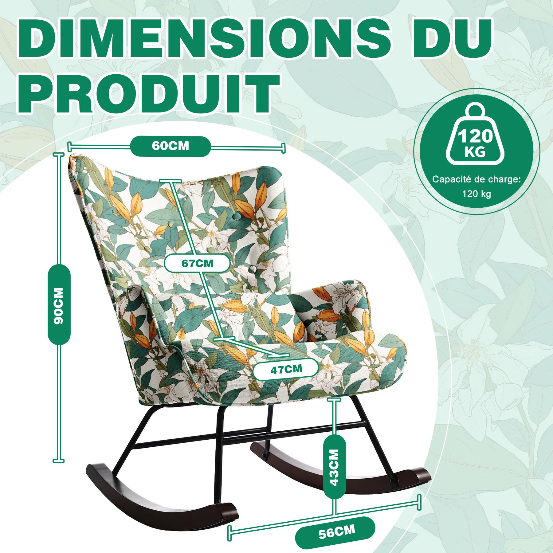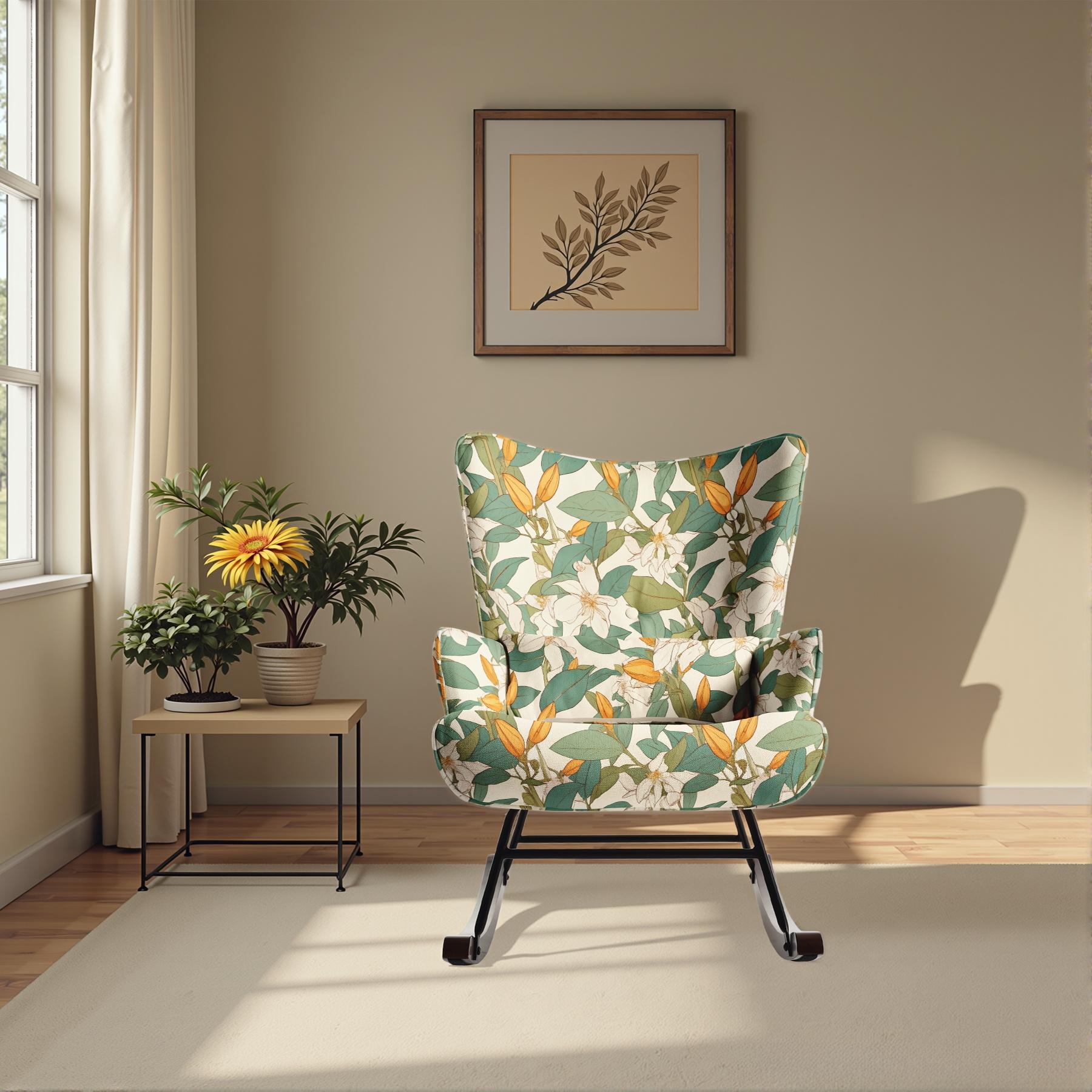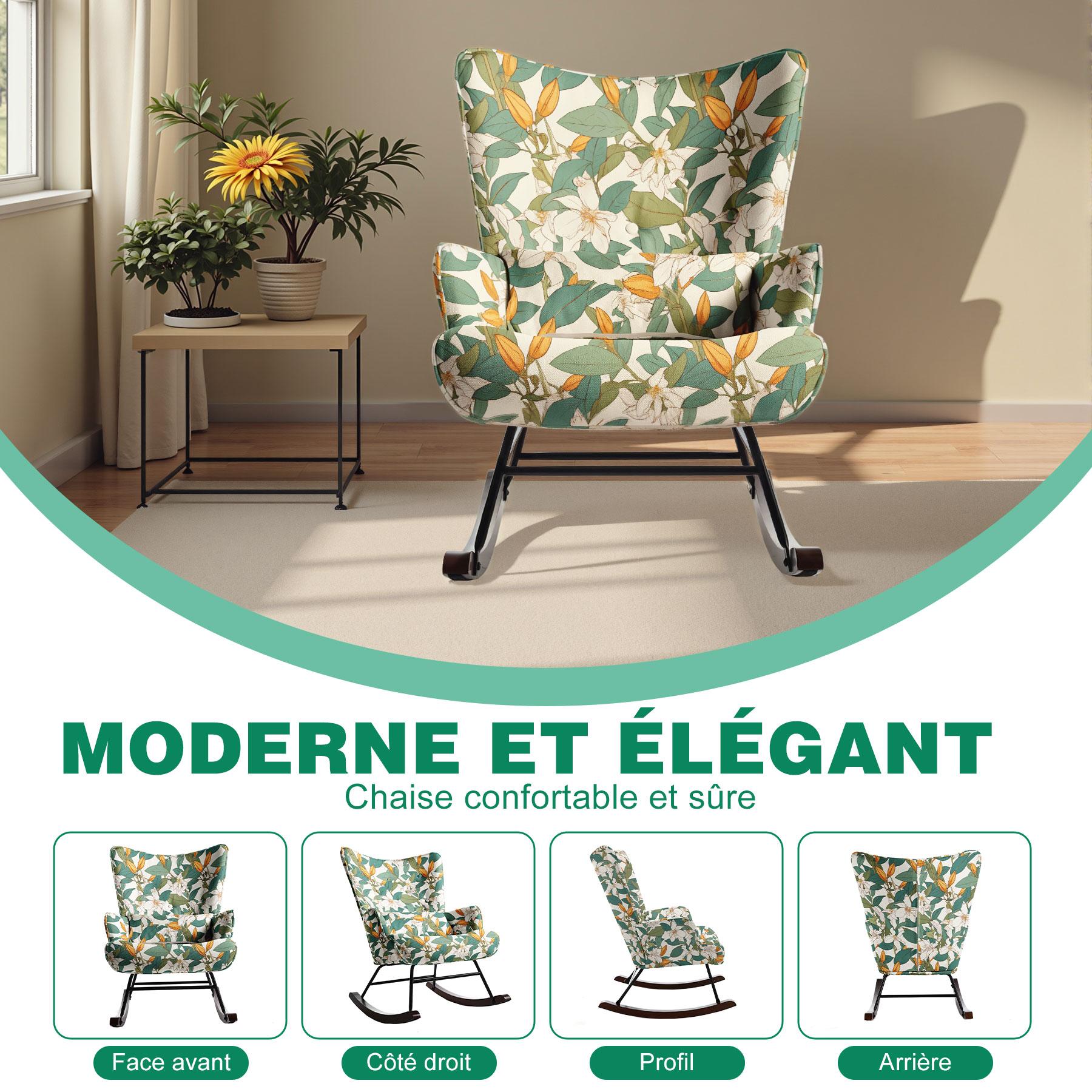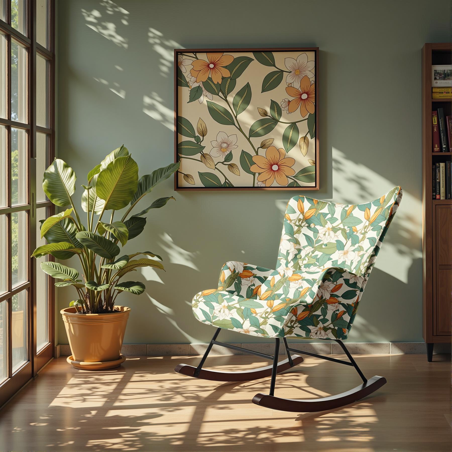 Vaste schommelstoel in imitatielinnen stof: Groen & Wit Leliepatroon - Tijdloze botanische elegantie