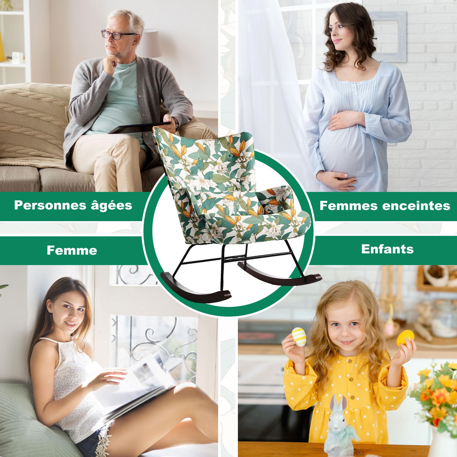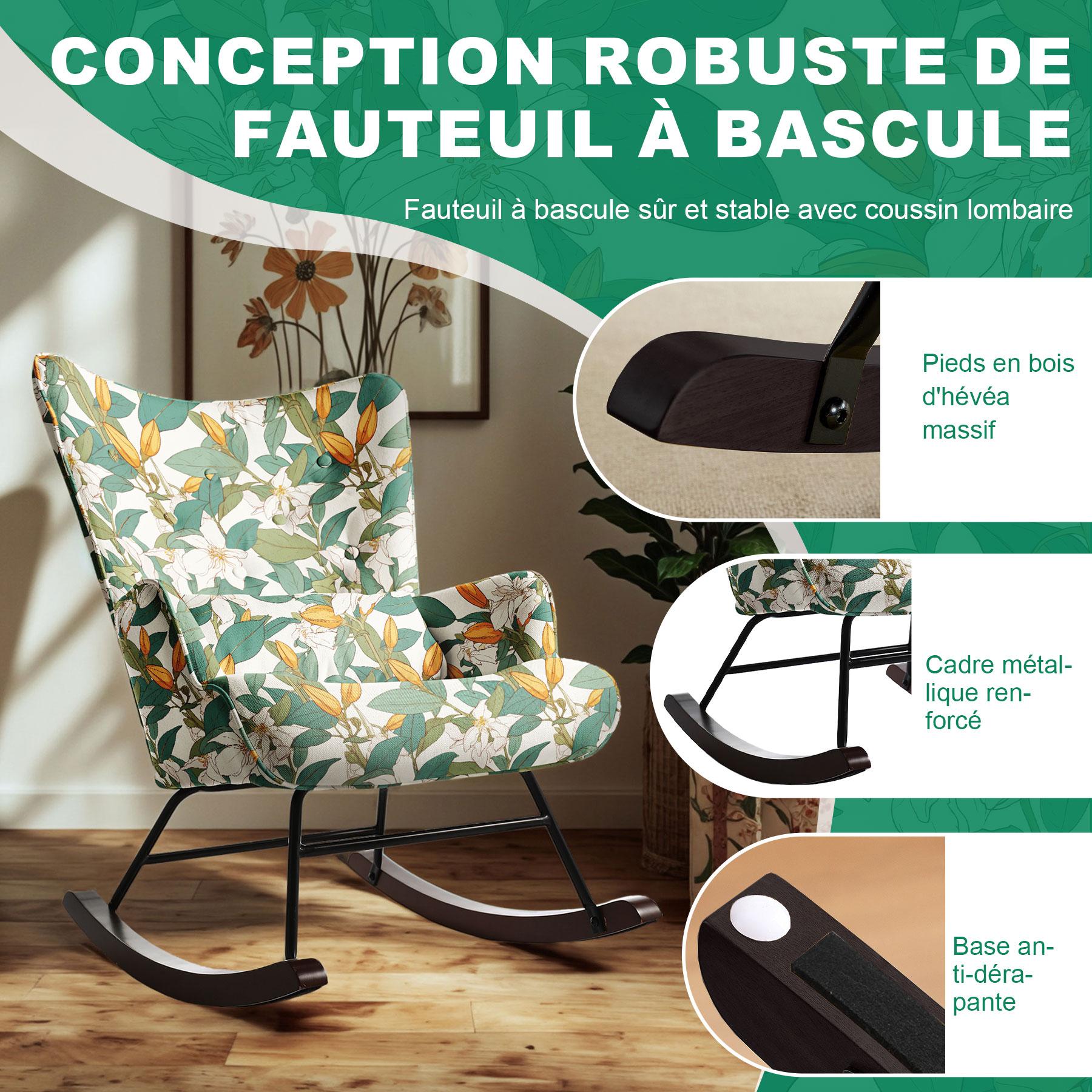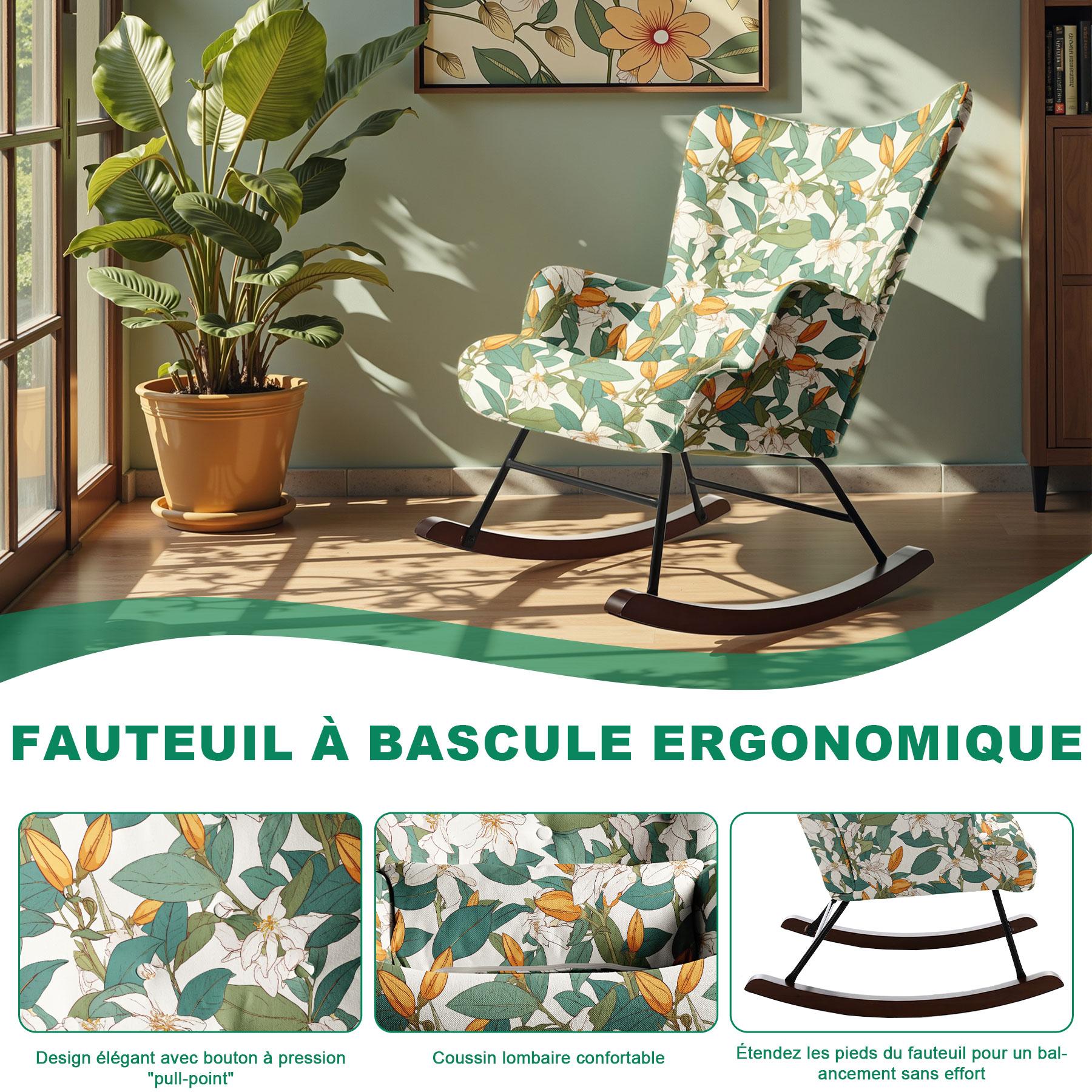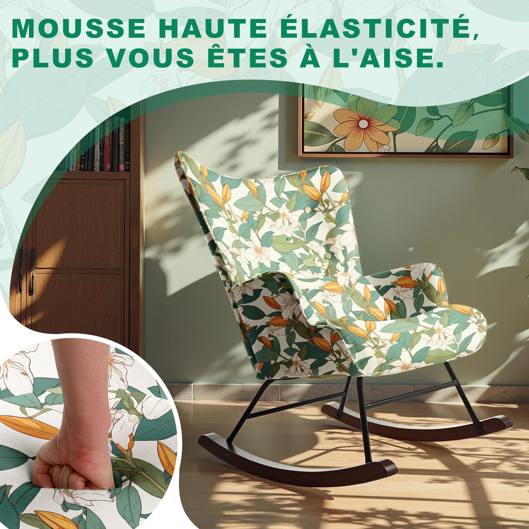 Vaste schommelstoel in imitatielinnen stof: Groen & Wit Leliepatroon - Tijdloze botanische elegantie