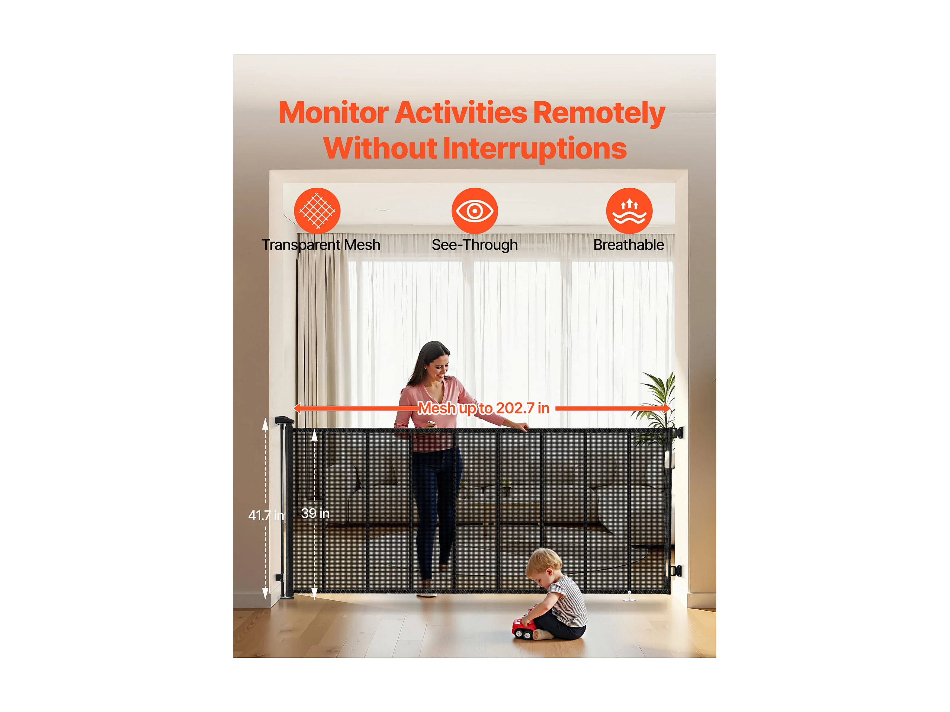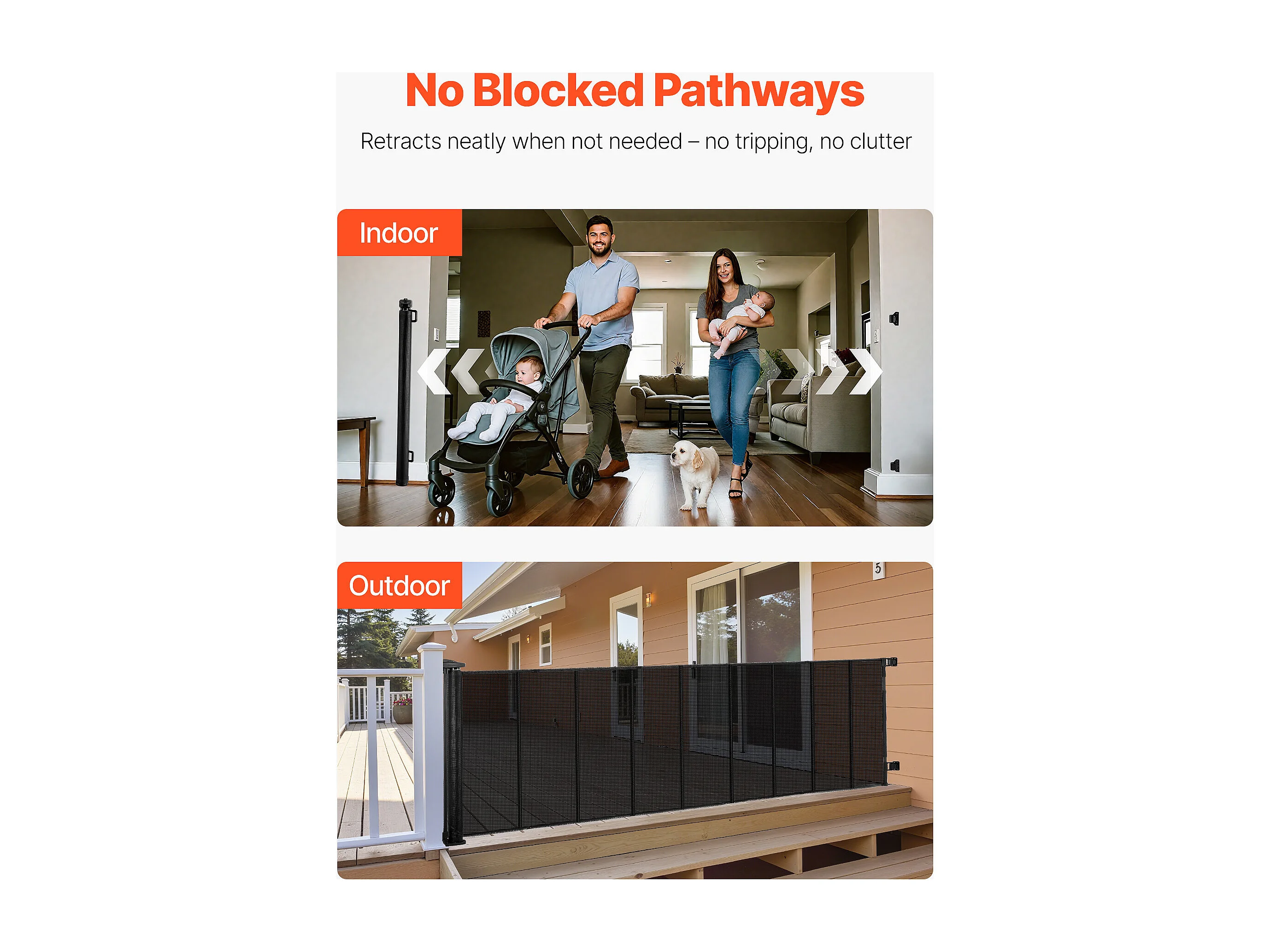 Veiligheidsbarrière SucceBuy Uitbreidbaar, Hekwerk uit Gaas Tot 515 cm Breed en 99 cm Hoog, Barrière Retractiel met Versterkte Banden