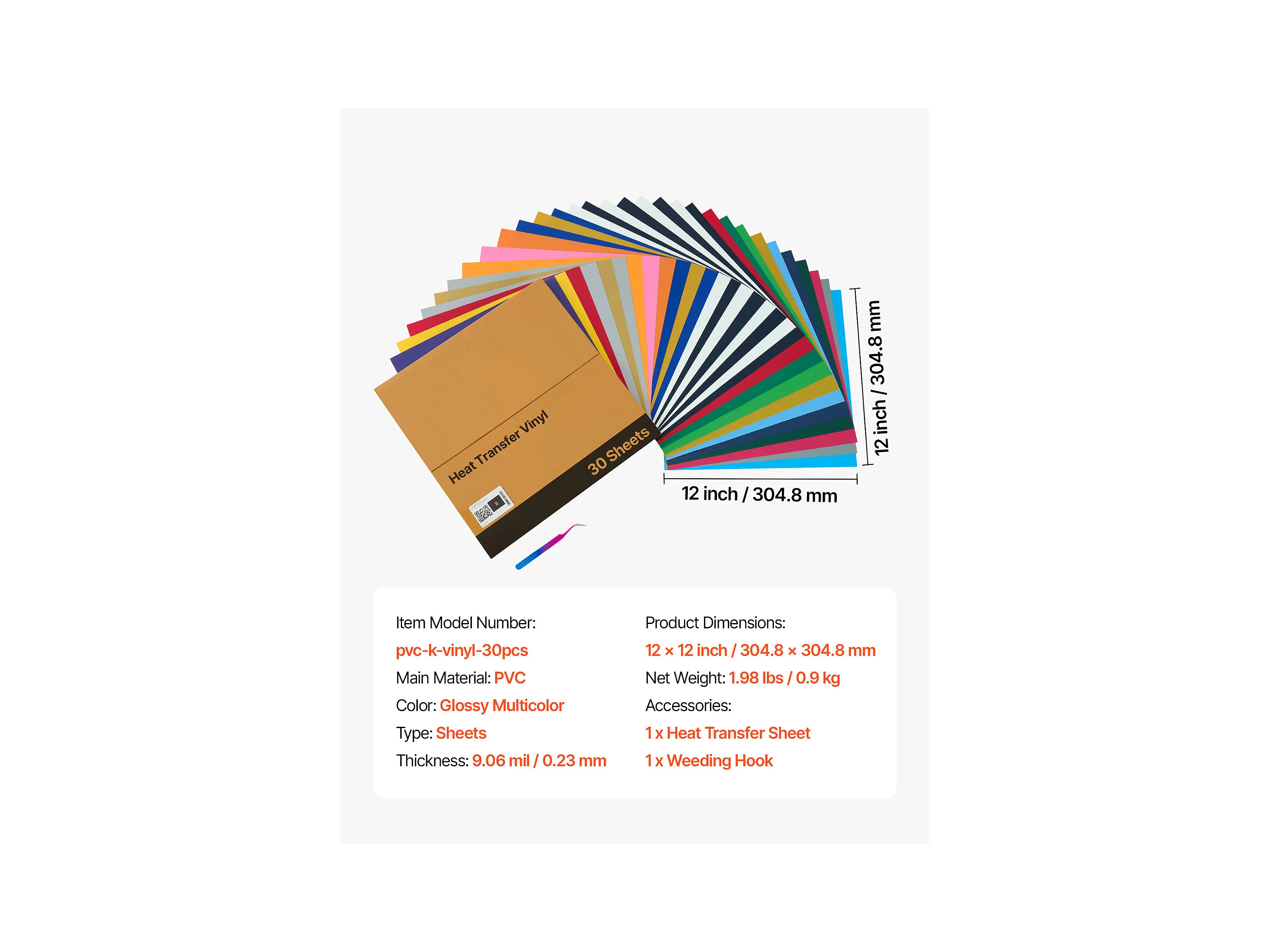 Vel Thermovinyl SucceBuy Set van 30STs 30,48x30,48 cm, Thermo-Flex Meerkleurig, Gemakkelijk te Snijden en te Ontgrassen, met Accessoires