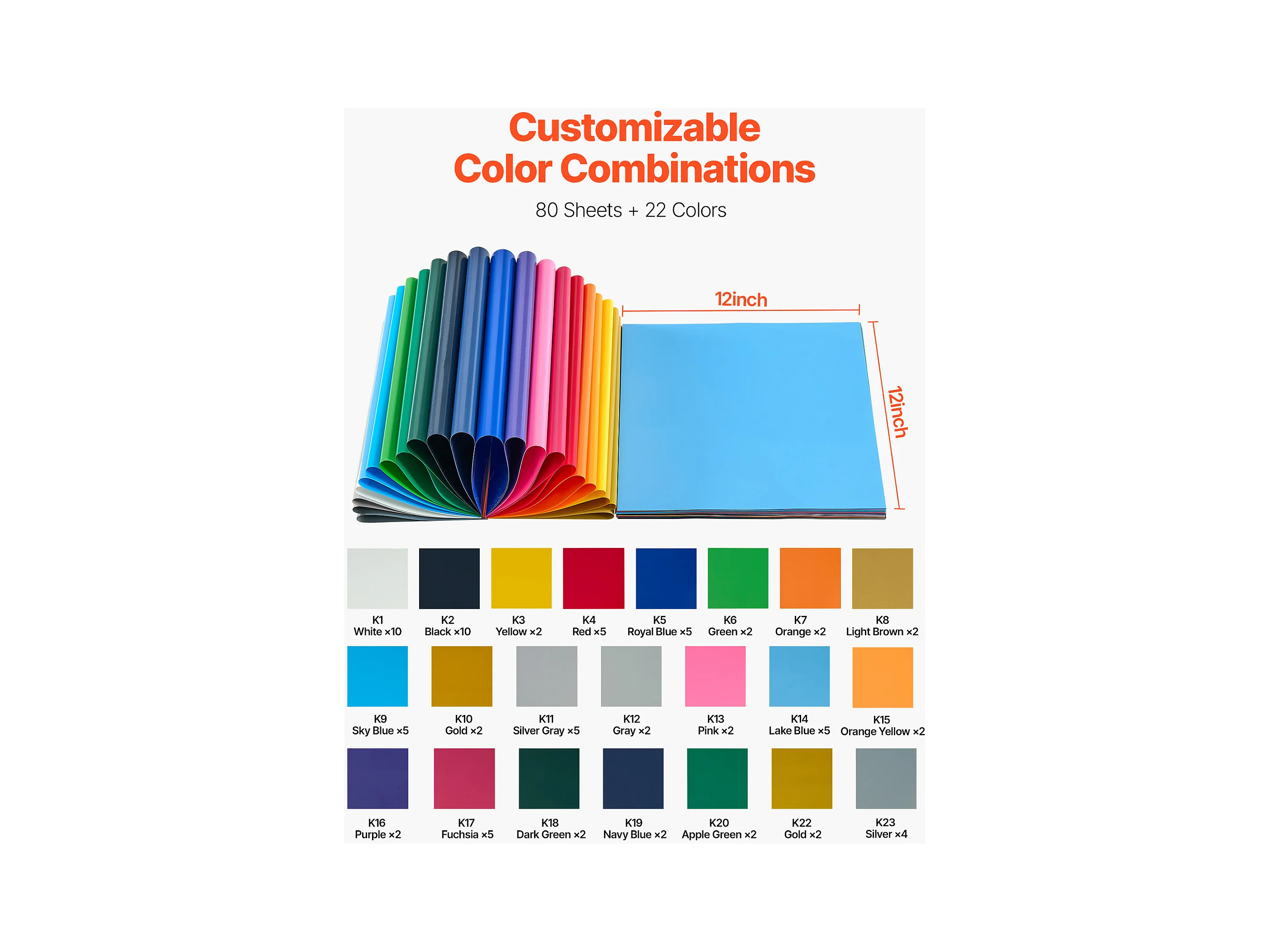 Vel Thermovinyl SucceBuy Set van 80STs 30,48x30,48 cm, Thermo-Flex Meerkleurig, Gemakkelijk te Snijden en te Ontgrassen, met Accessoires