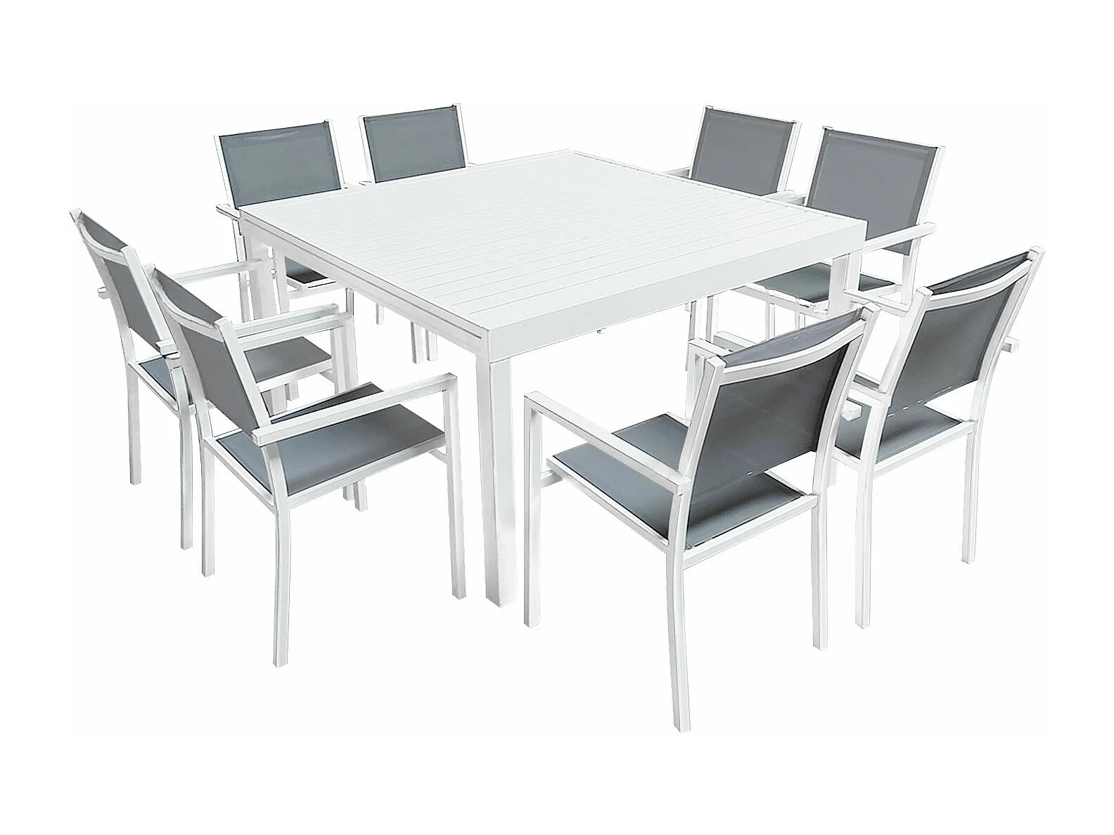 Tuineetset van aluminium: een vierkante tafel L140 cm en 8 opstapelbare fauteuils - Licht naturel en grijs - MACILA van MYLIA