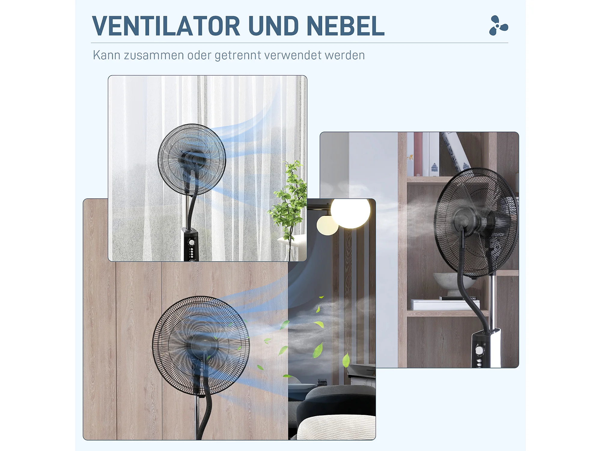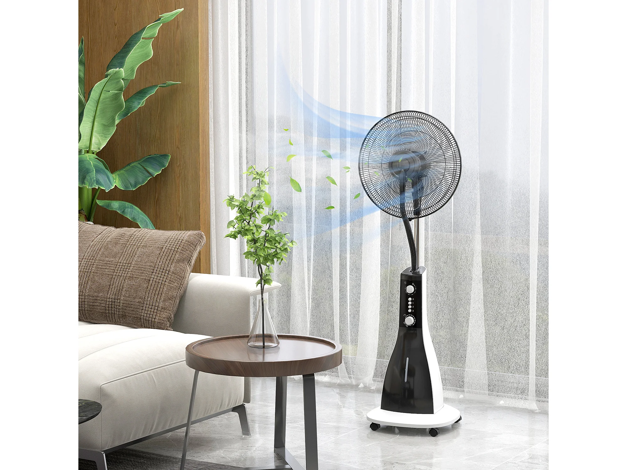 Ventilateur met functie brumisateur 3L, 90W, 3 modi, minuterie, oscillerend, roulettes, zwart (44,5x38,5x120cm)