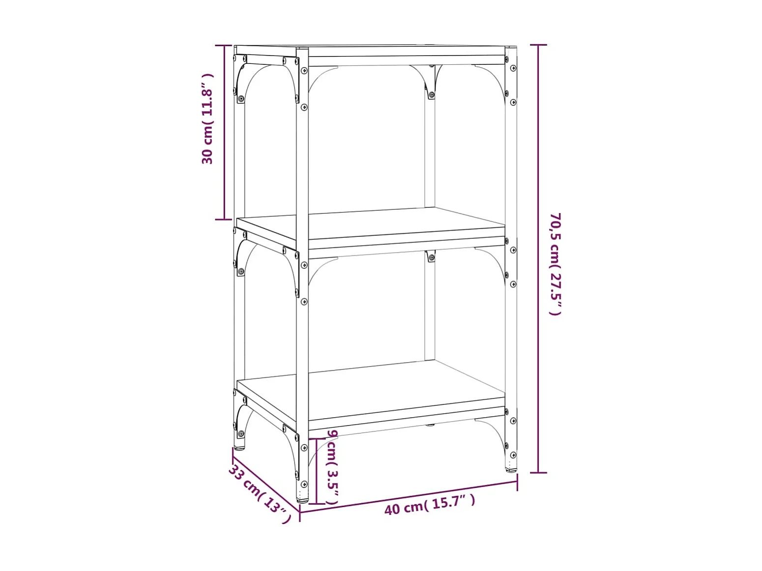 Ventura Boekenkast 40x33x70,5 cm hout en staal grijs sonoma eikenkleur