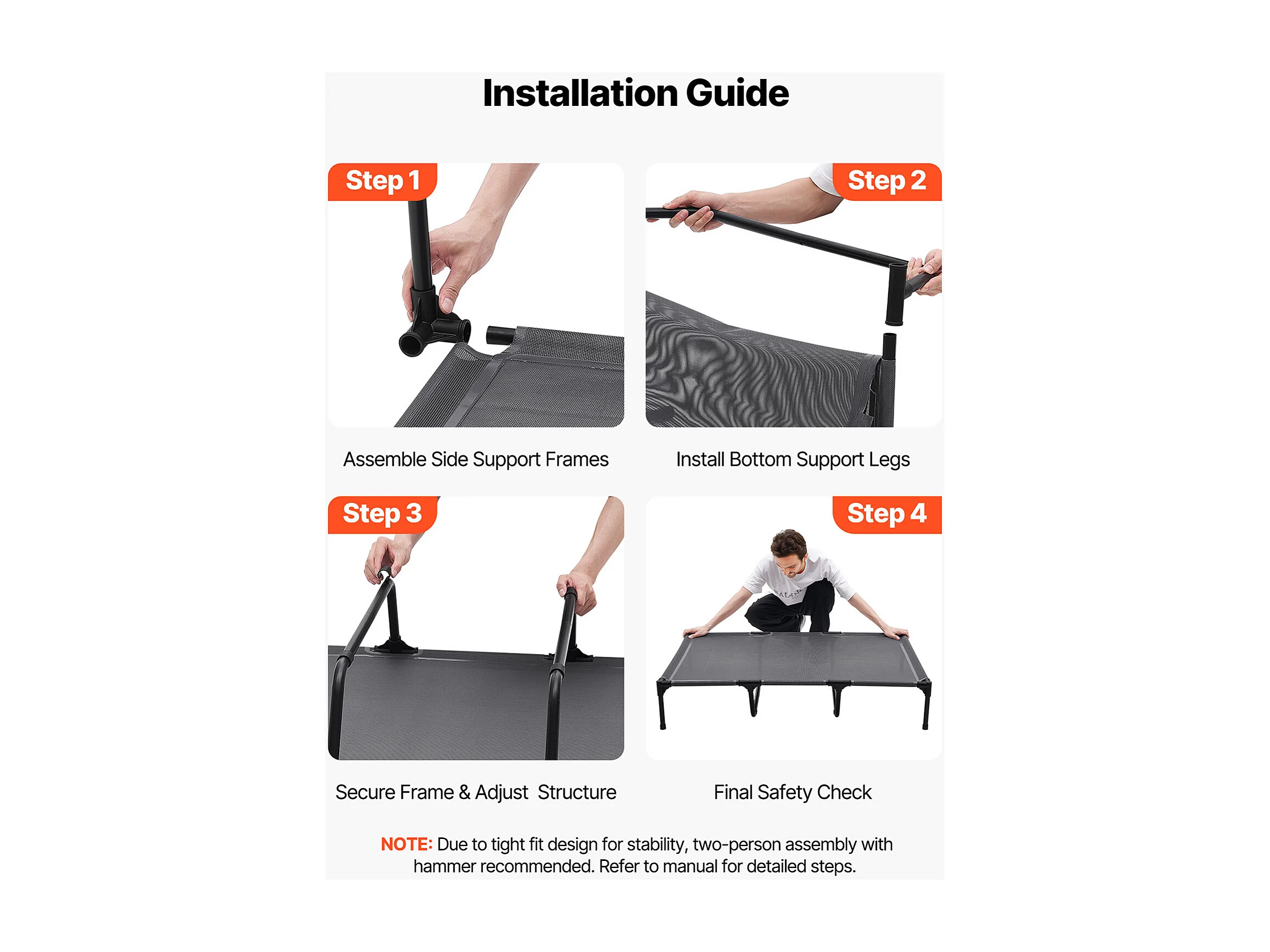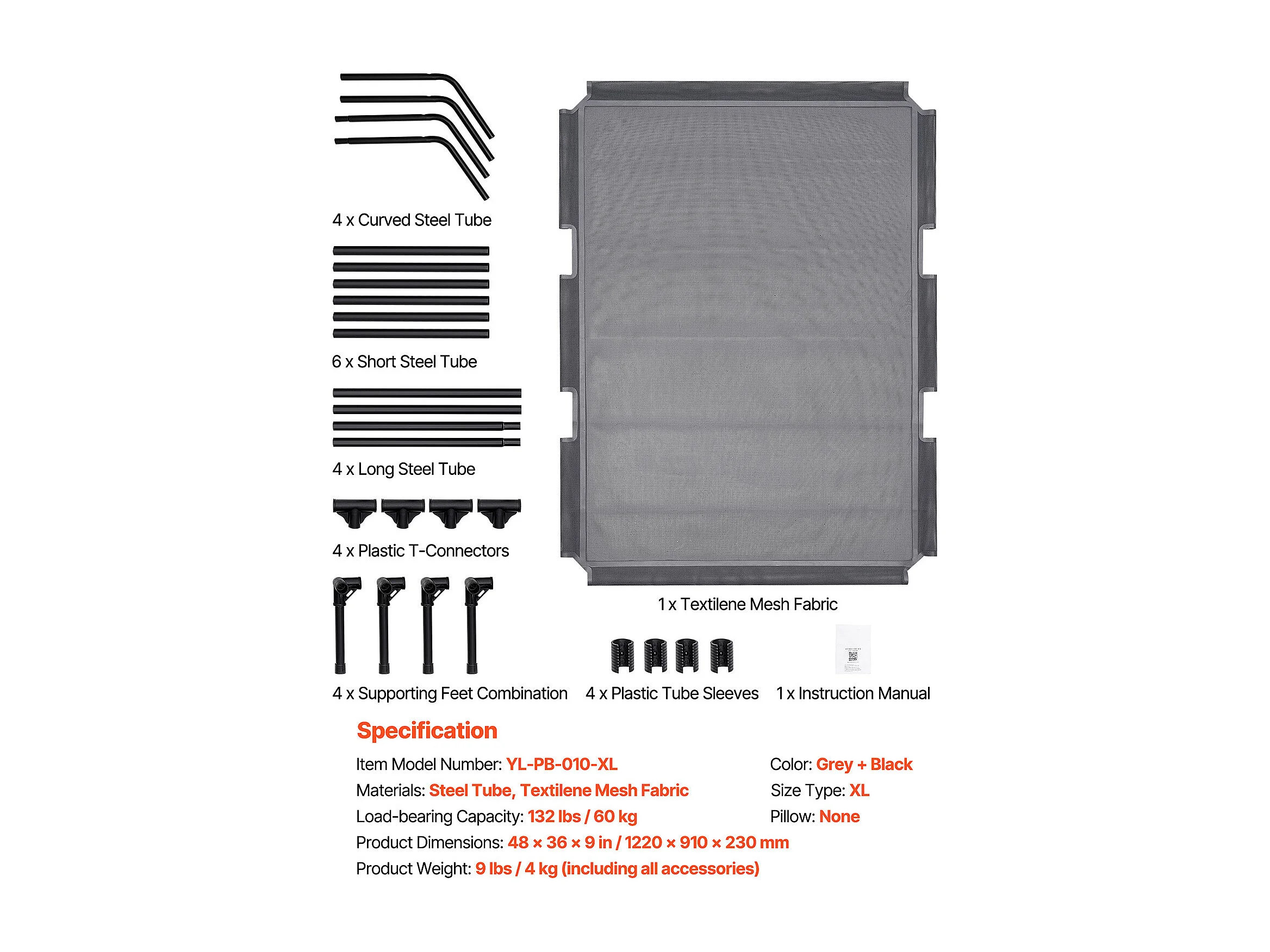 Verhoogd Bed SucceBuy voor Honden, Draagbaar Veldbed voor Huisdieren, met Stalen Frame en Ademend Gaas, XL, Grijs