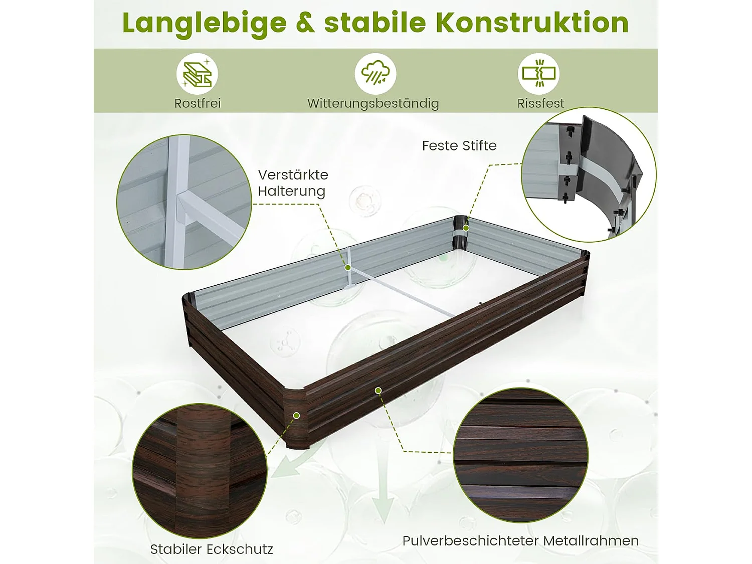 Verhoogd bloembed van metaal, kruidenbak, groentebed, bloembed, tuinbed voor groenten, fruit, kruiden, bloemen, 240 x 120 x 30 cm ZB33540