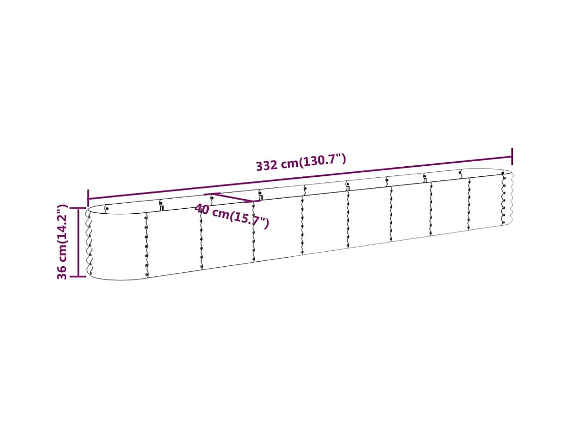 Verhoogd tuinbed gepoedercoat staal 332x40x36 cm grijs