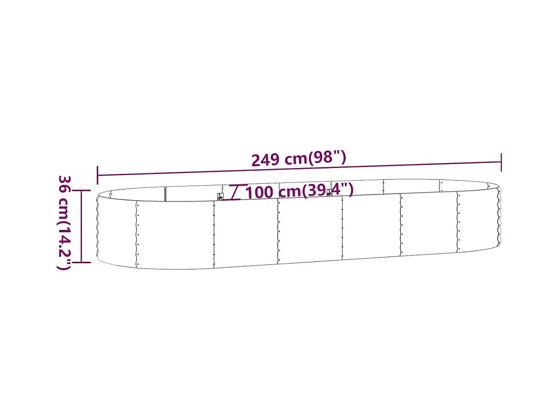 Verhoogd tuinbed gepoedercoat staal 249x100x36cm grijs