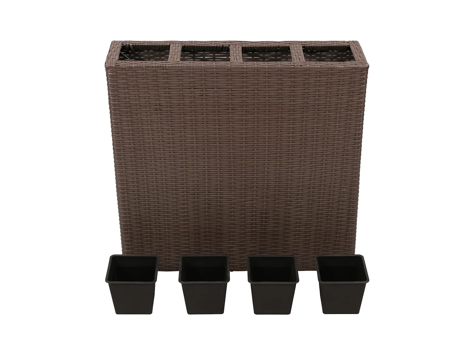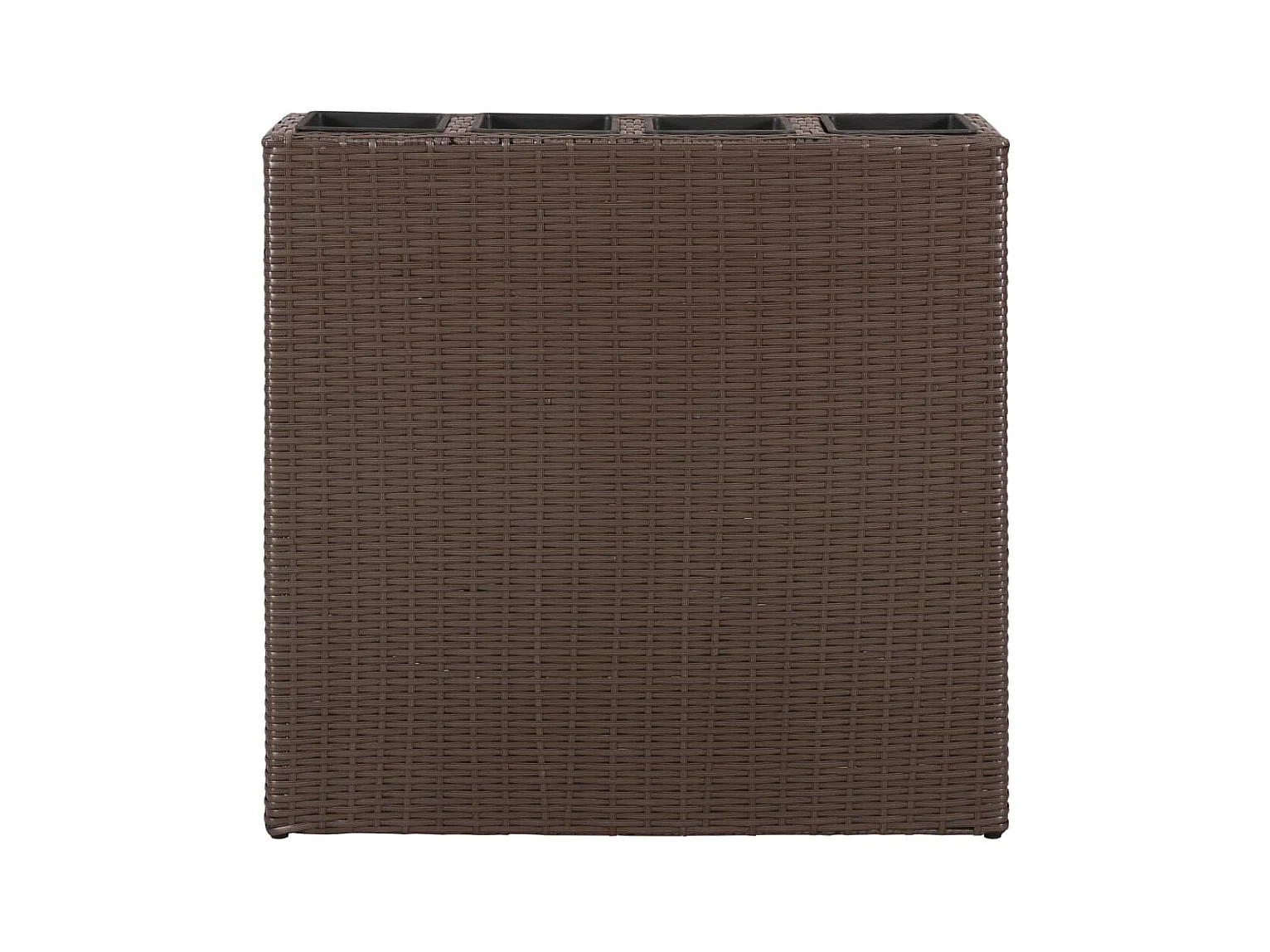 Verhoogd tuinbed met 4 potten, bruin polyrotan
