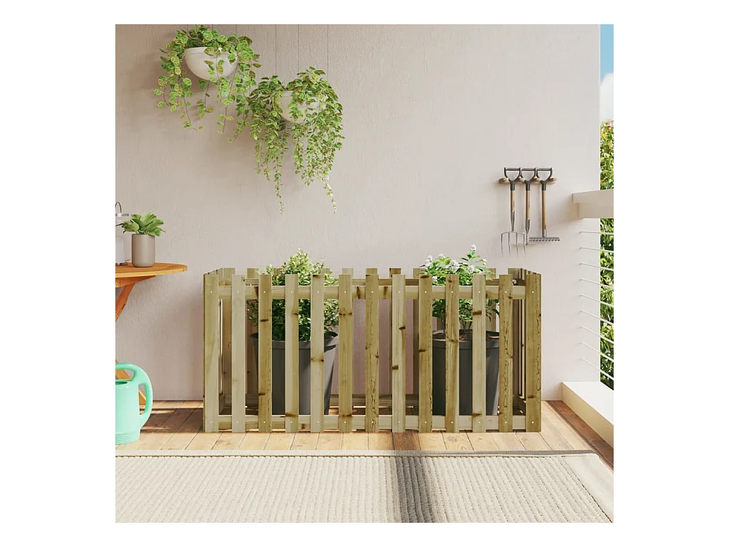 Verhoogd tuinbed met geïmpregneerd grenenhouten schuttingontwerp