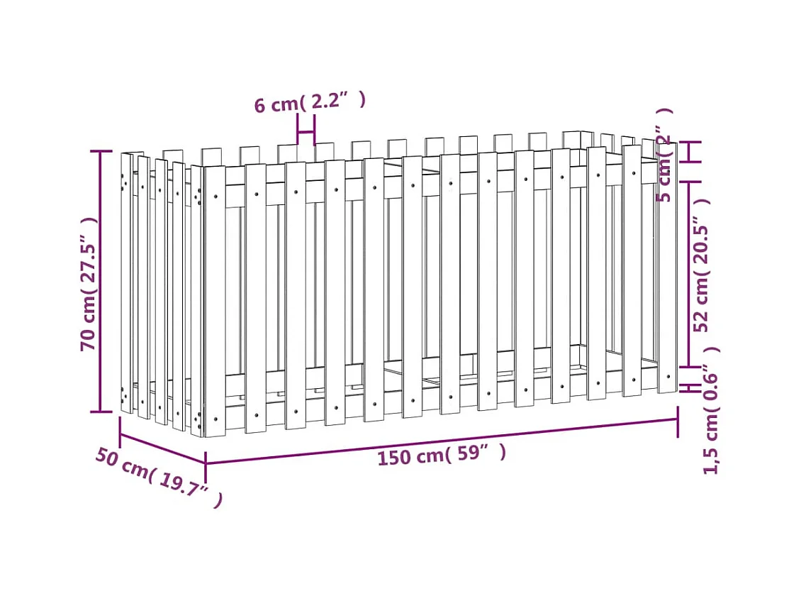 Design verhoogd tuinbed met omheining 150x30x30cm massief grenen