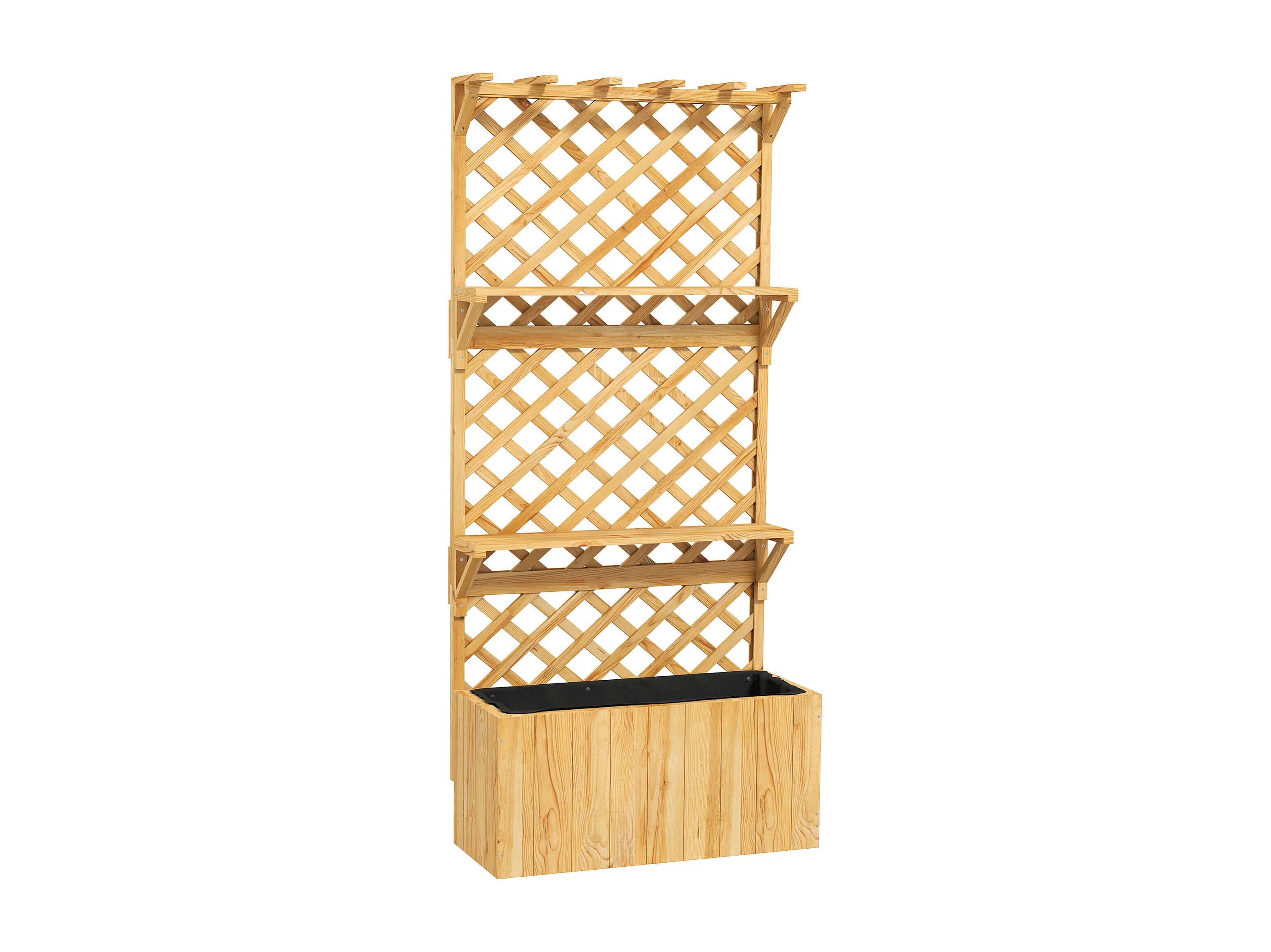 Verhoogde bloembak met trellis, natuurlijk sparrenhout, met planken, natuurlijk grijs (76x33x177cm)
