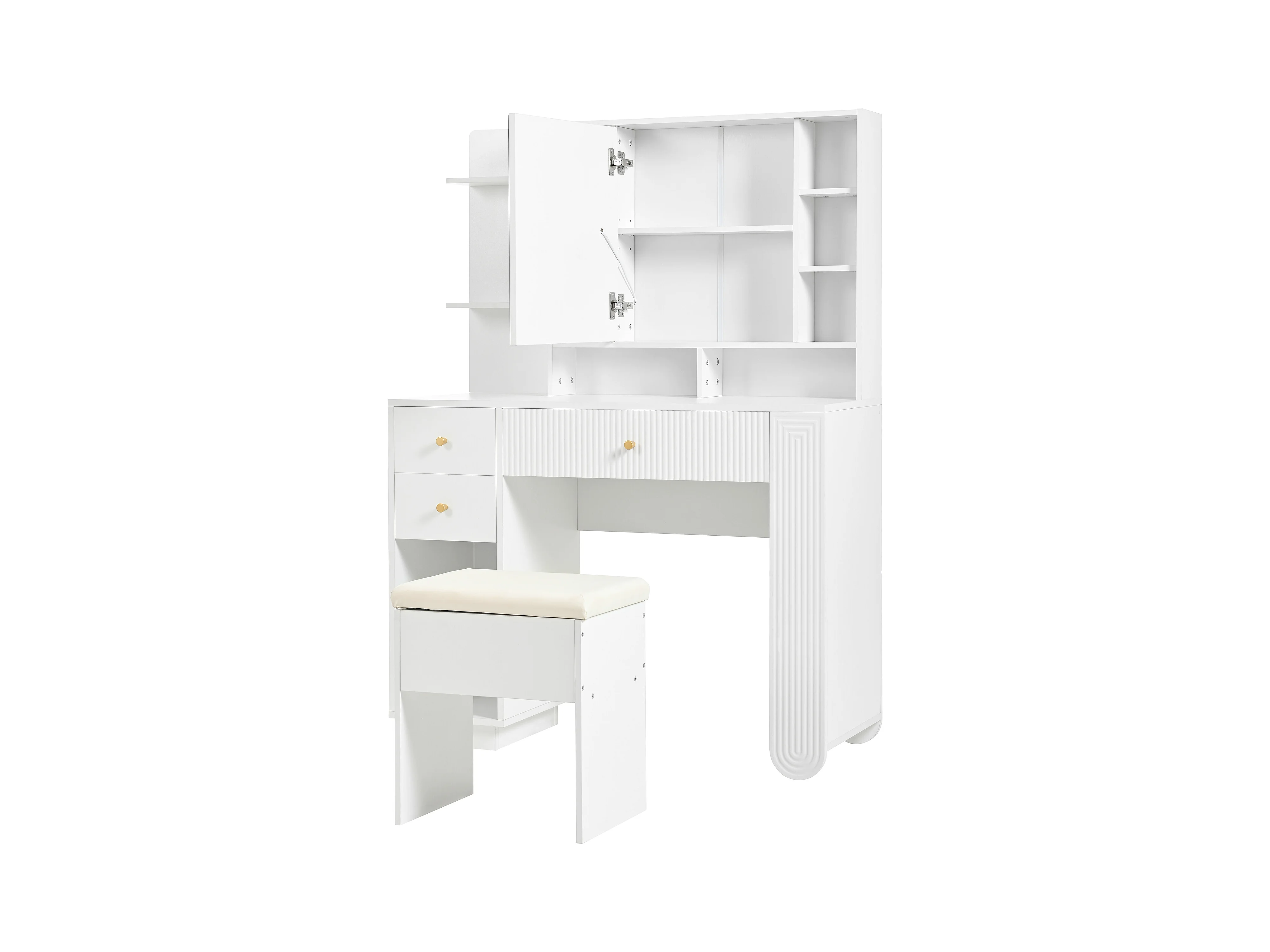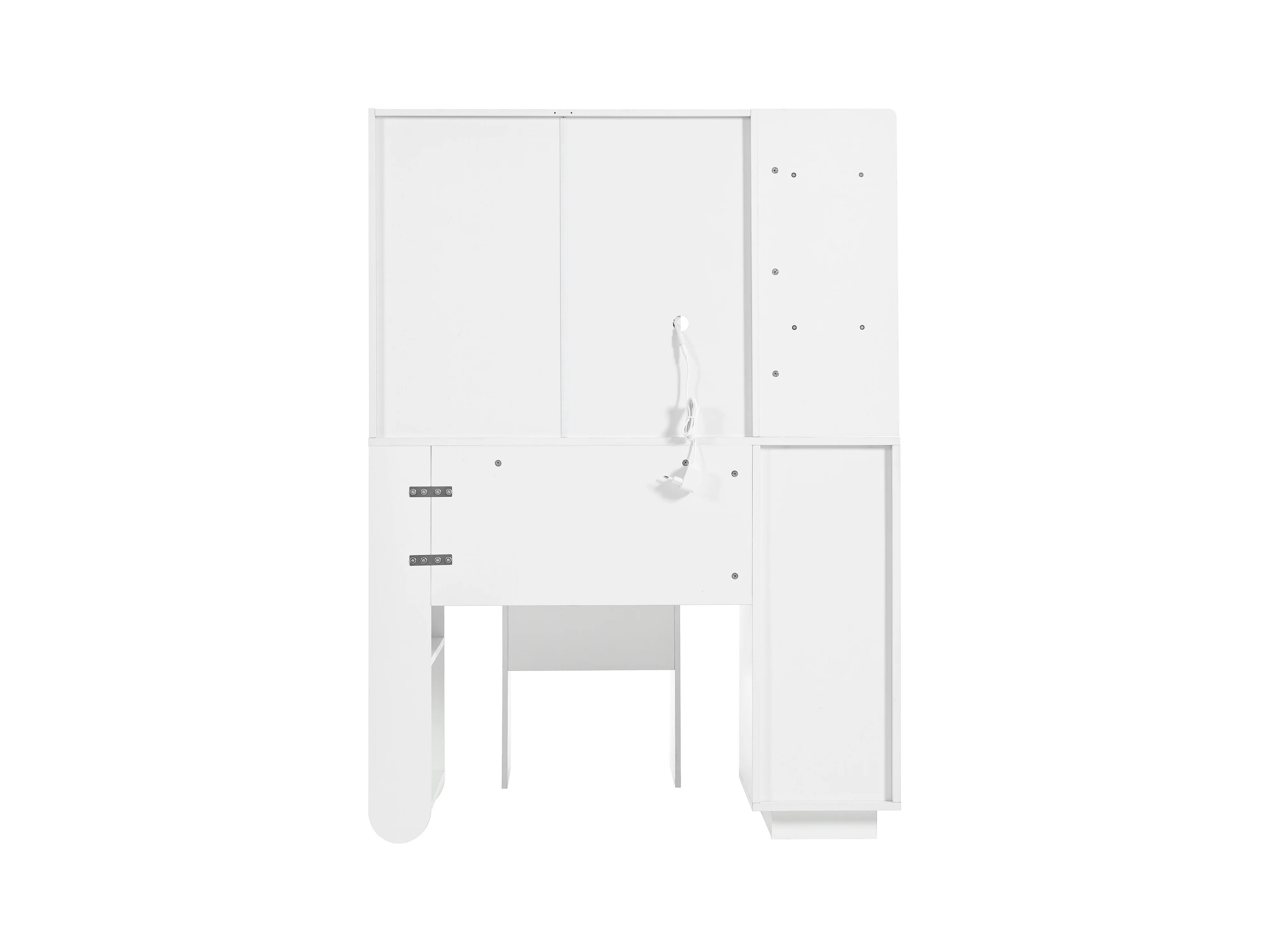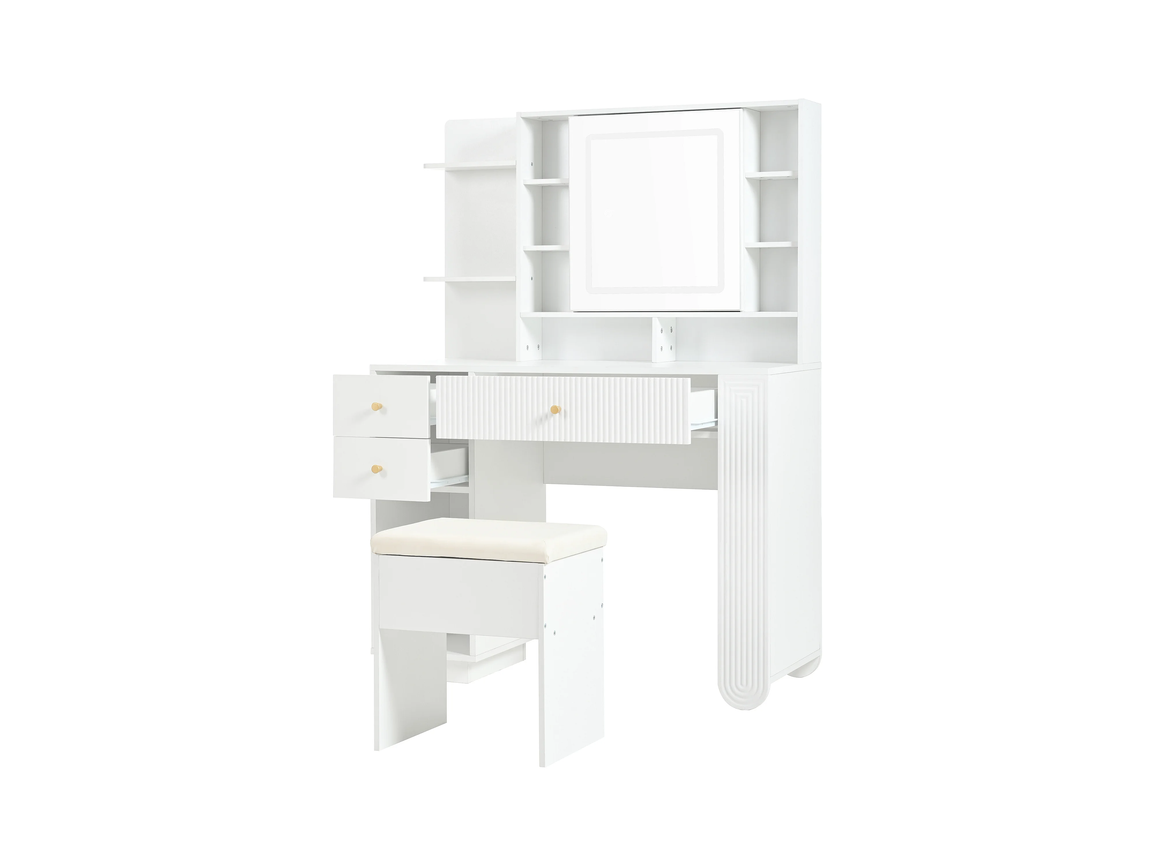 Verlichte kaptafel met spiegel en kruk - Kaptafel met lades en open plank