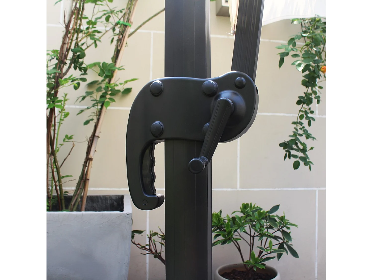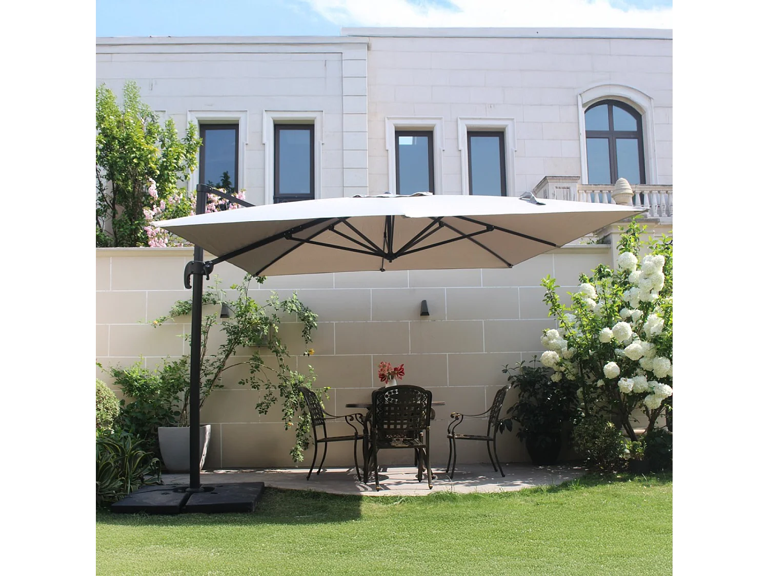 Verrijdbare parasol PALATINO ecru 3x3m met 4 tegels voor contragewicht