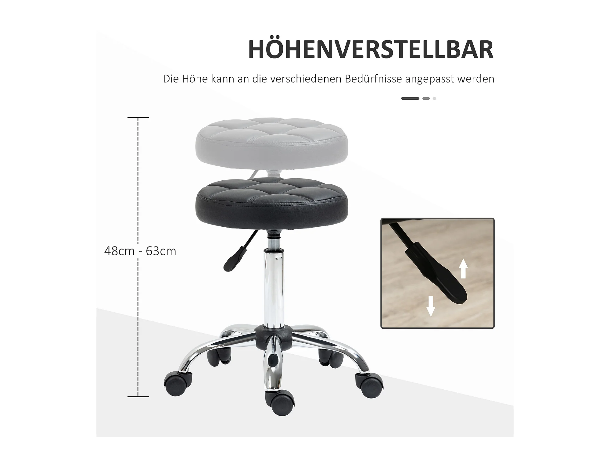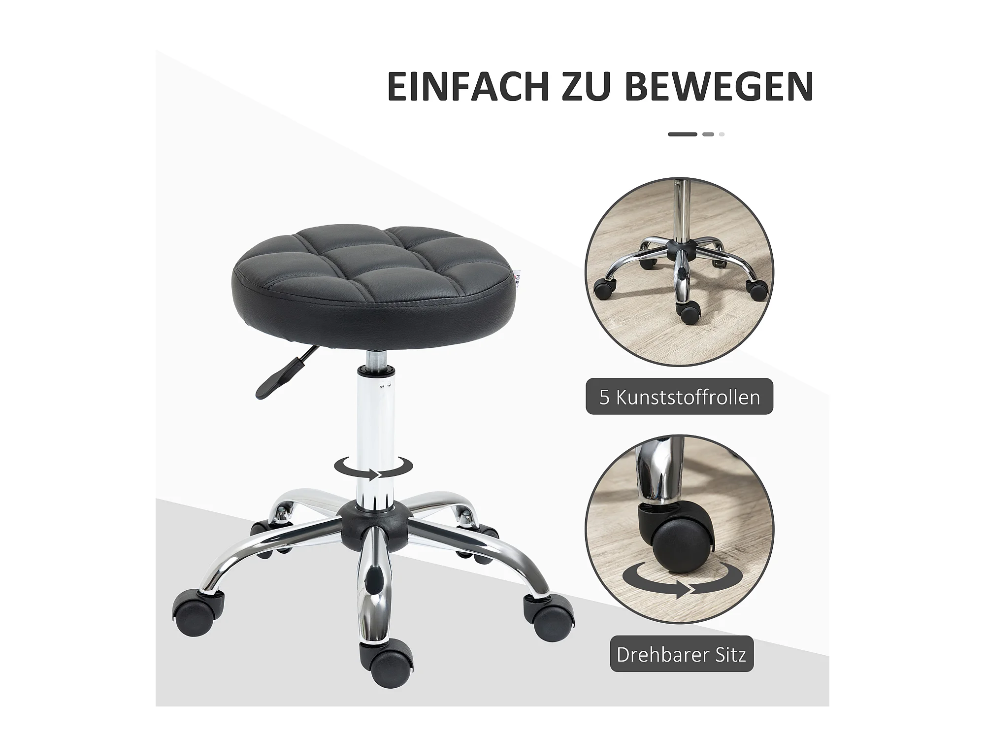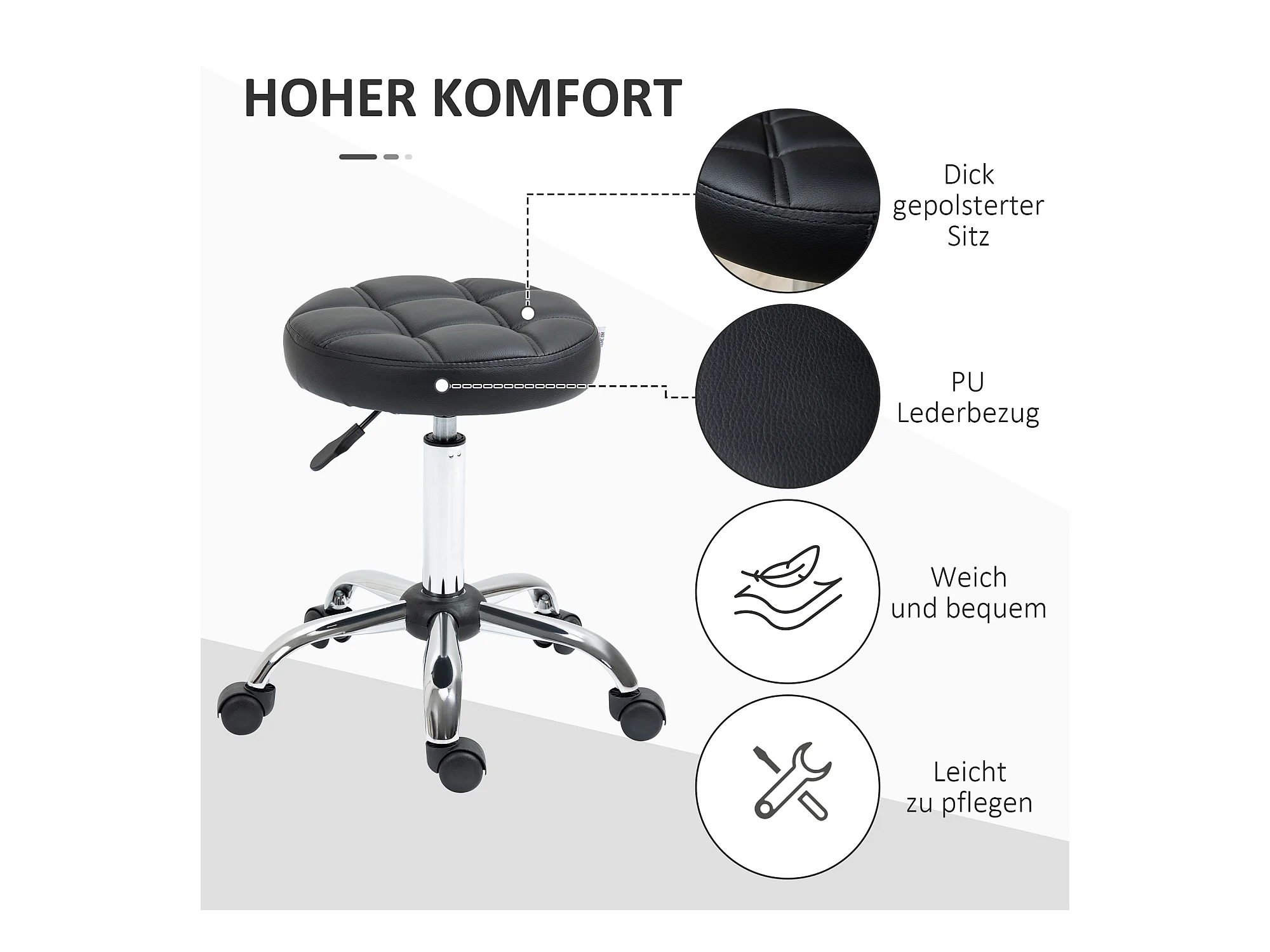 Hoogteverstelbare rolkruk, kunstleer, zwart, mobiliteit en comfort (35x35x84cm)