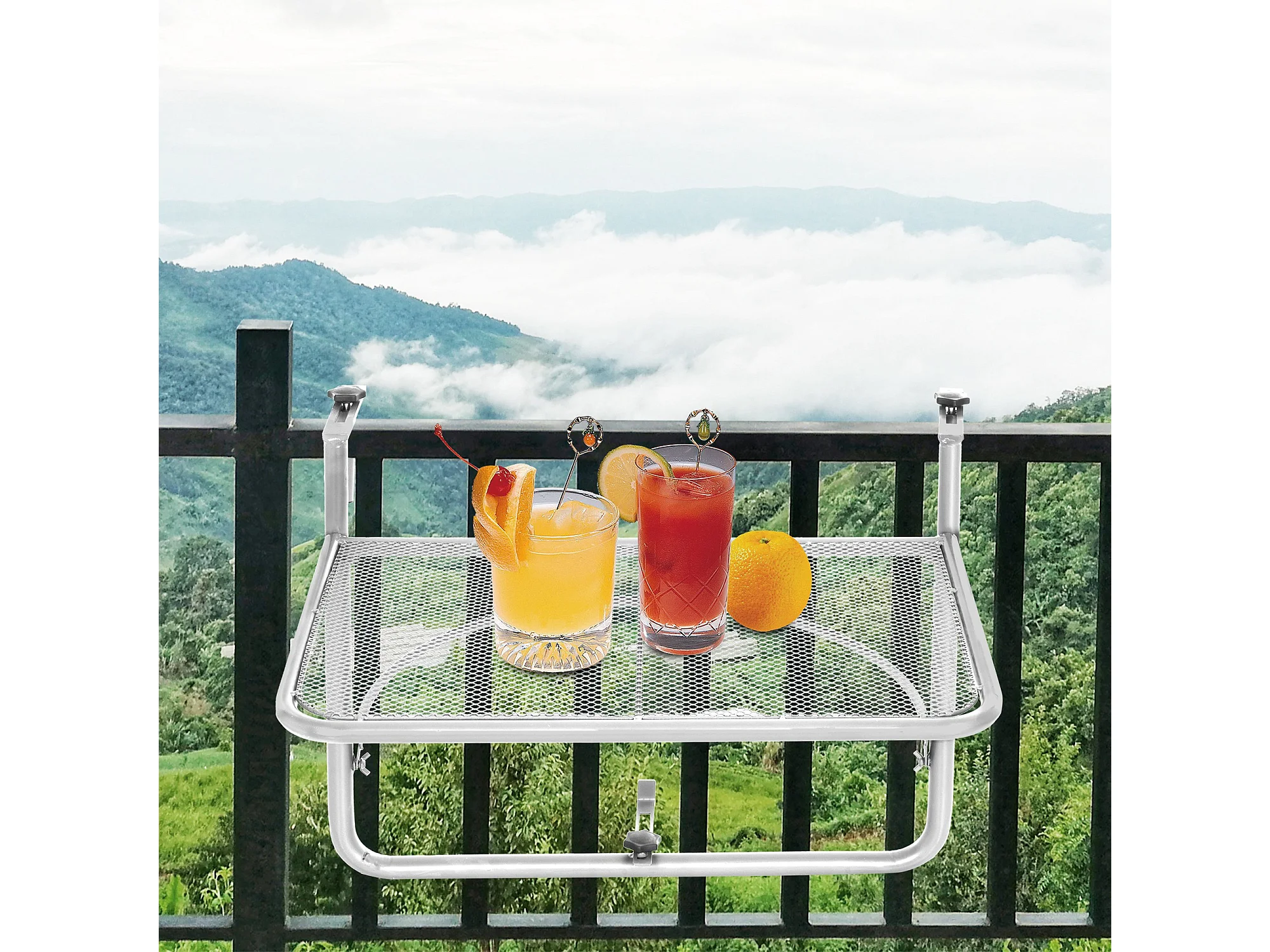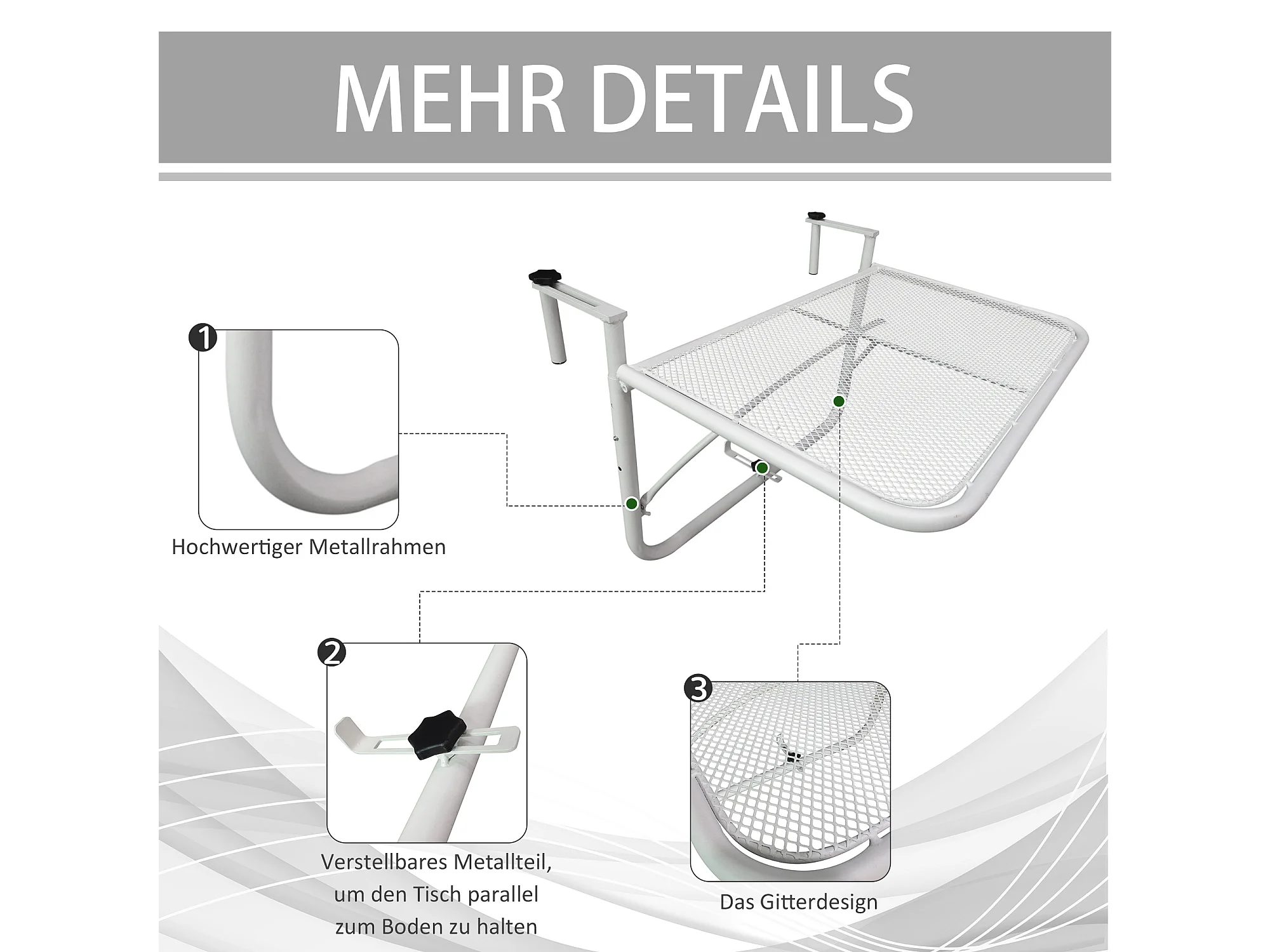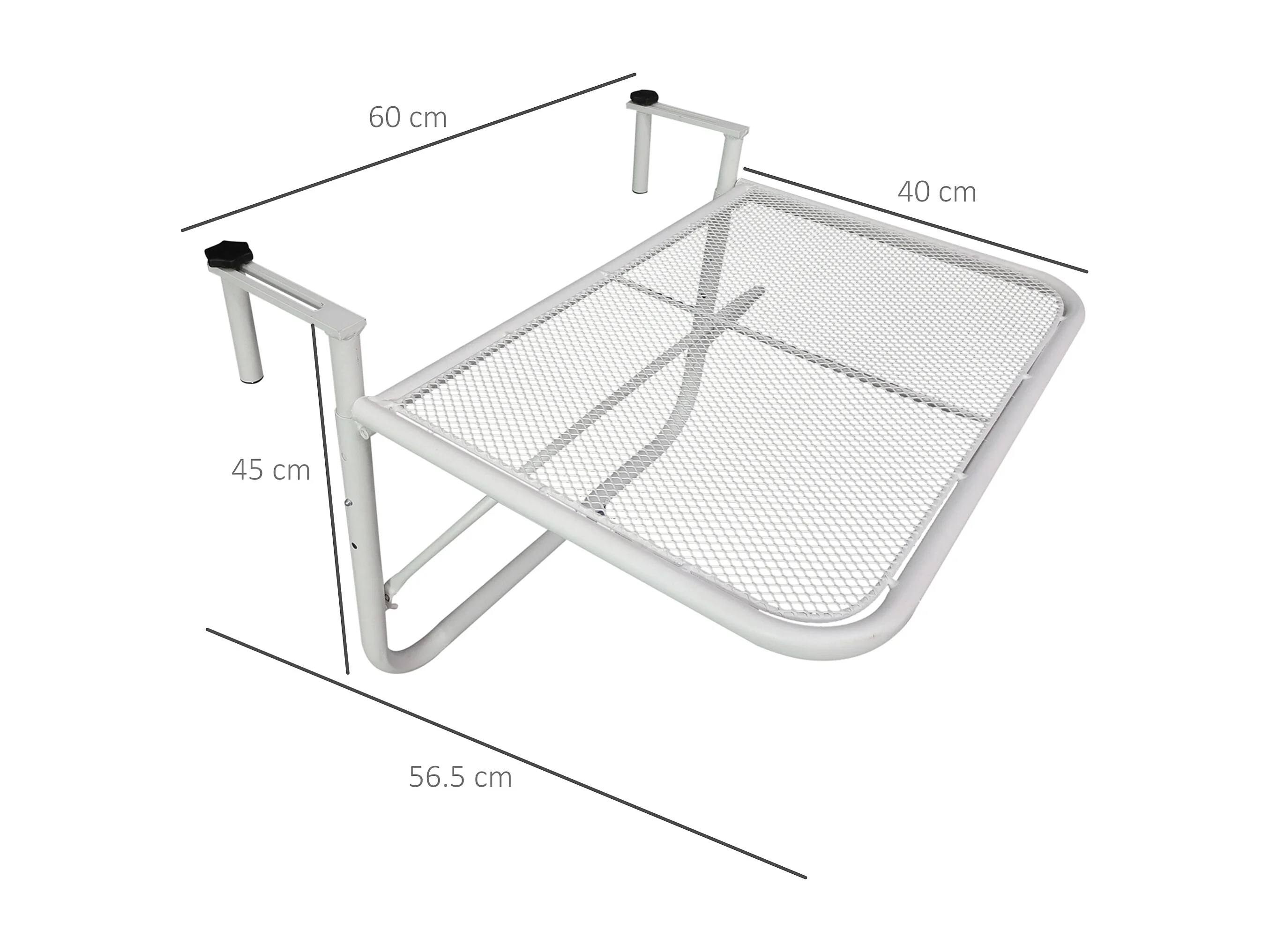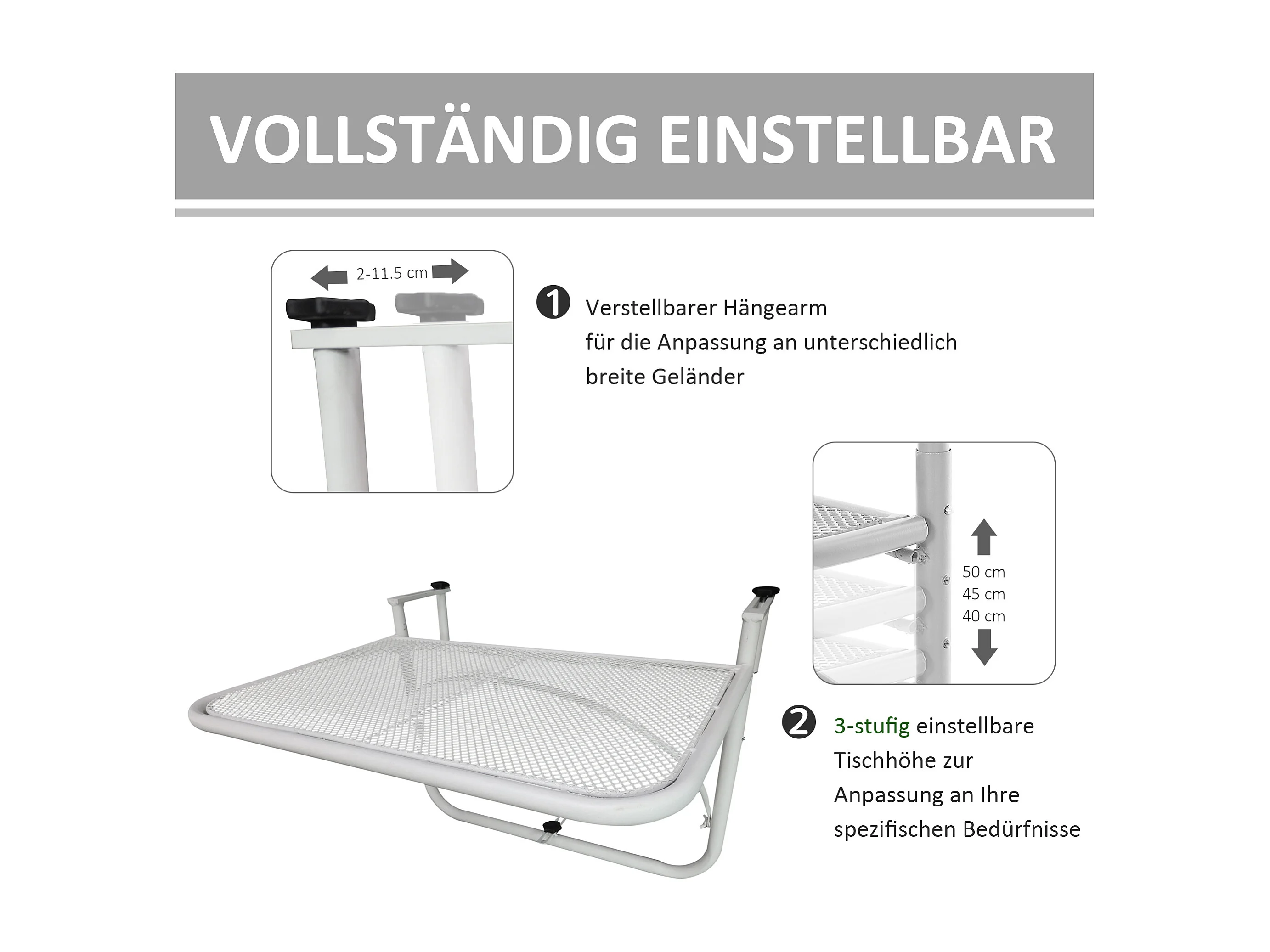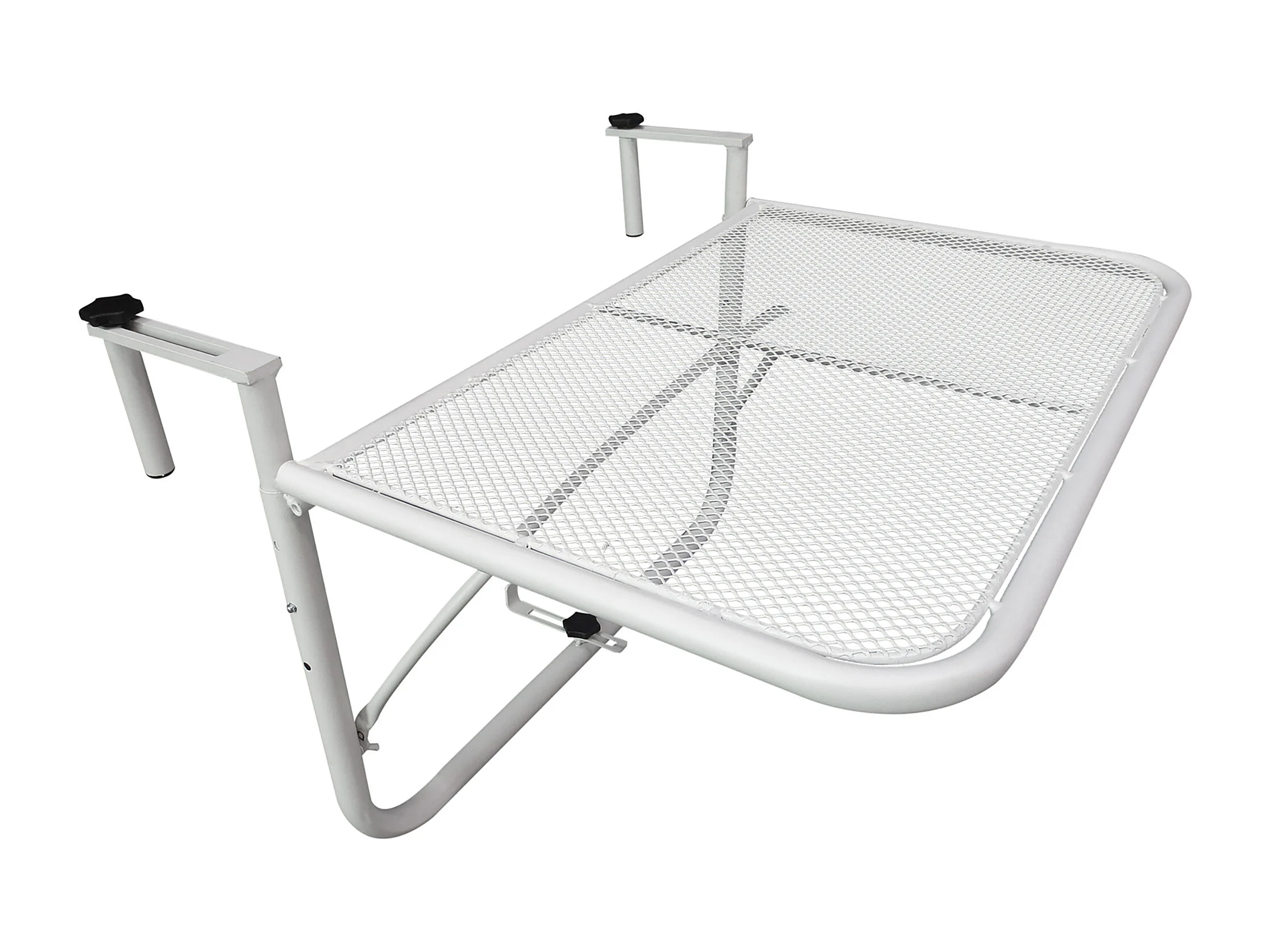 Verstelbare hangtafel voor balkon, modern design, metaal, wit, met geventileerd blad (60x56,5x45cm)