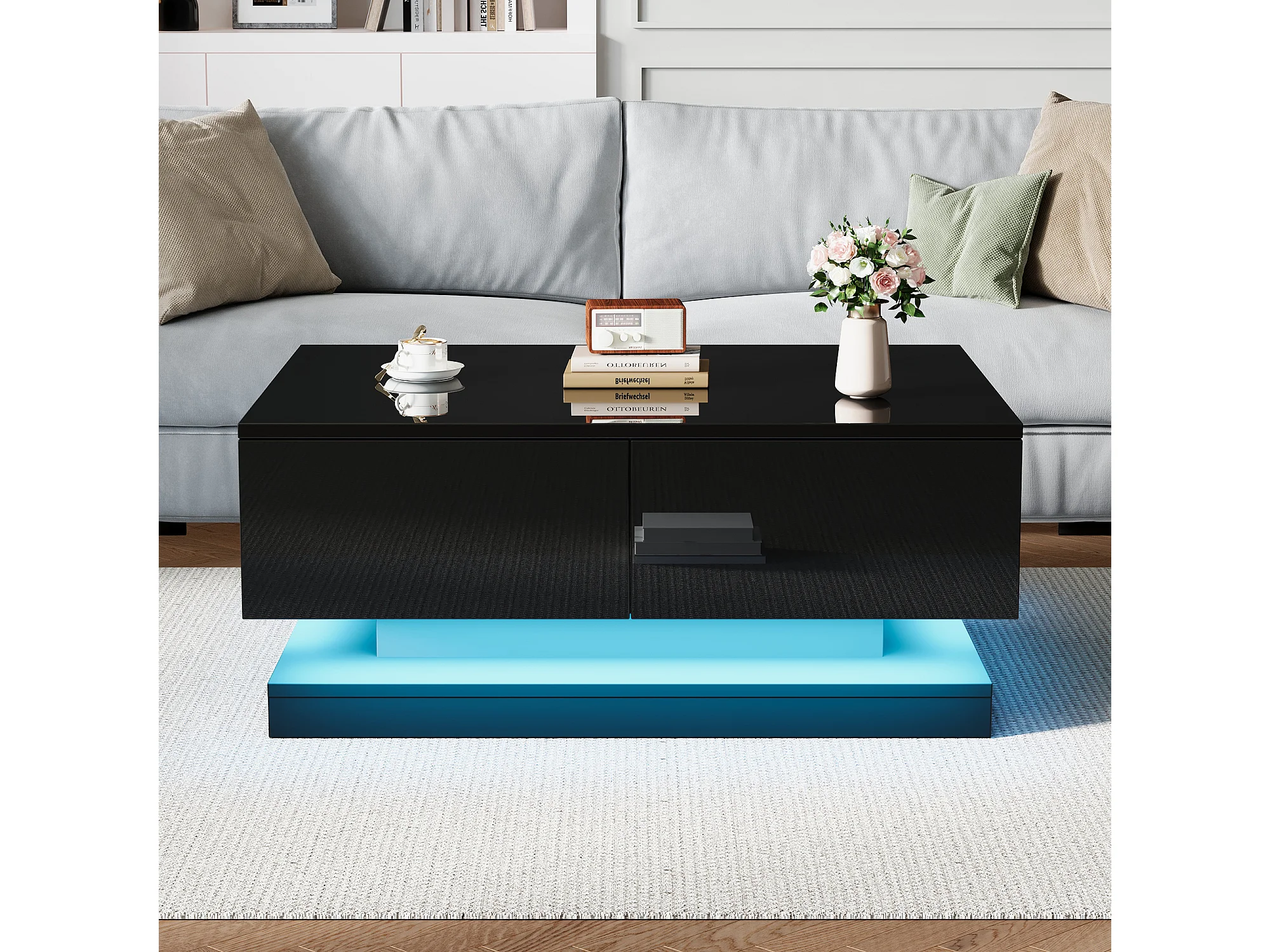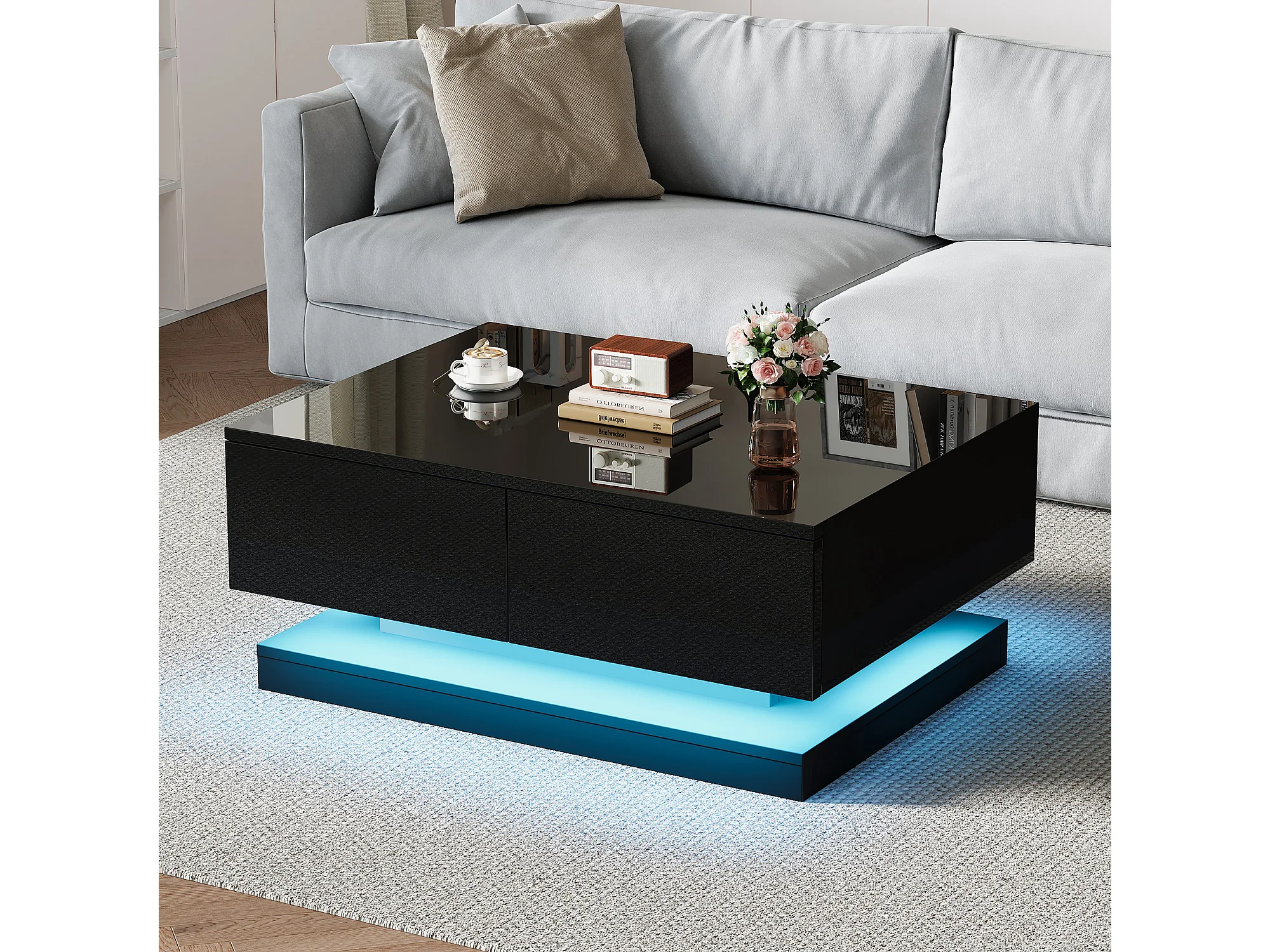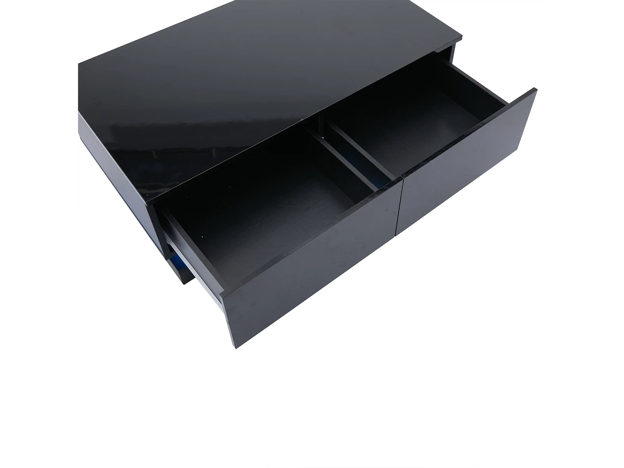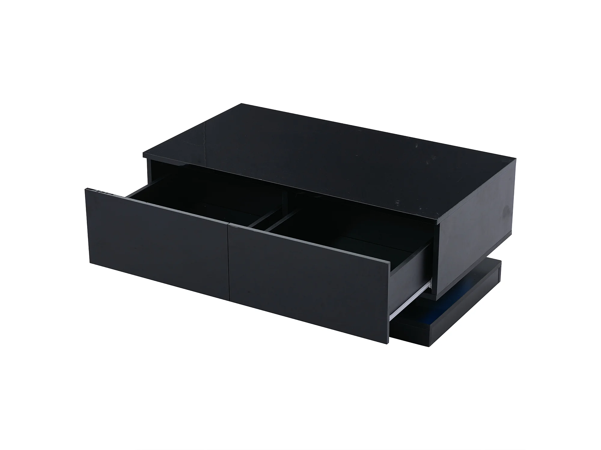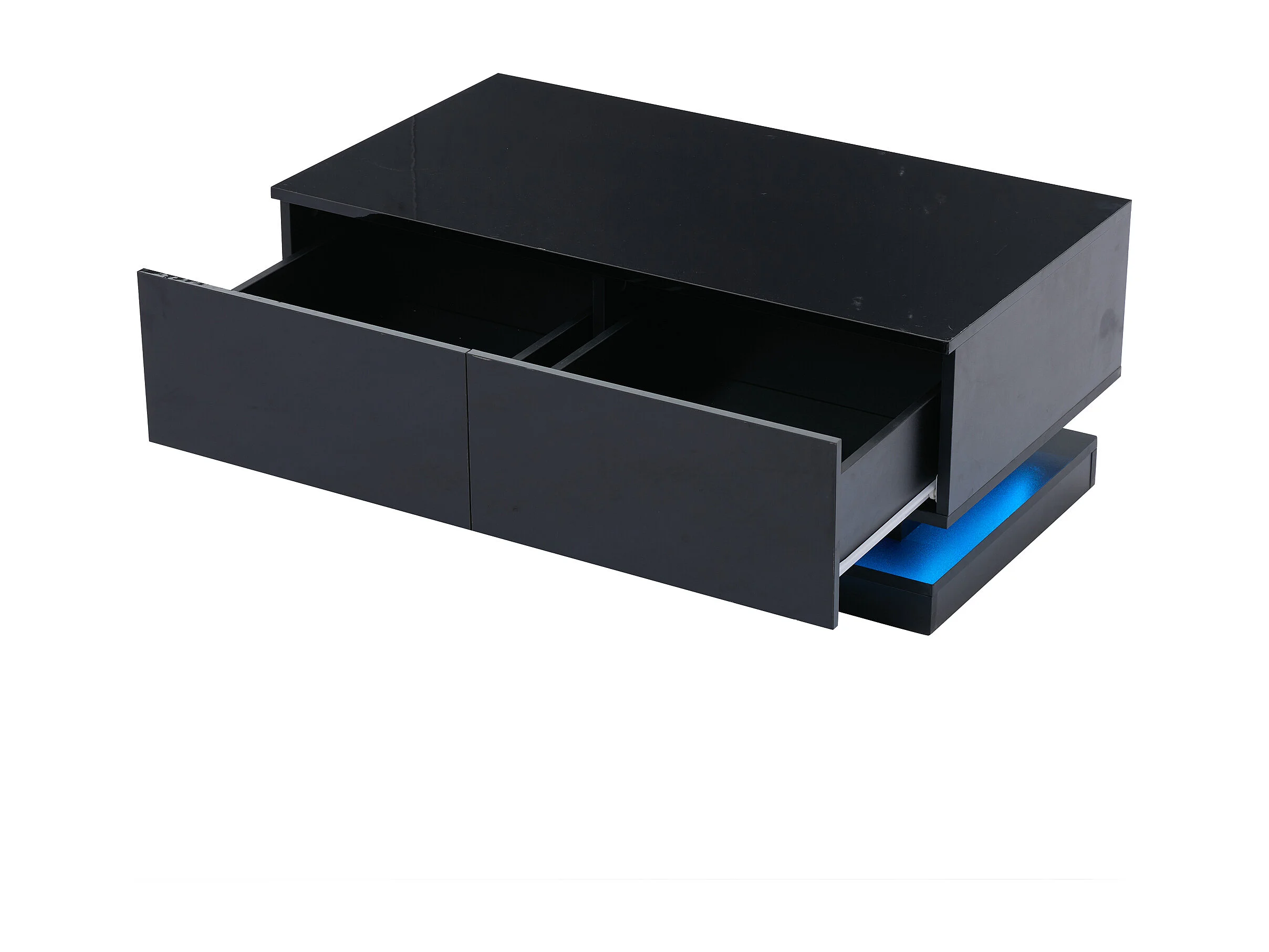 Verstelbare salontafel LED lade gehard glas geïntegreerde opbergruimte multifunctioneel zwart moderne woonkamer