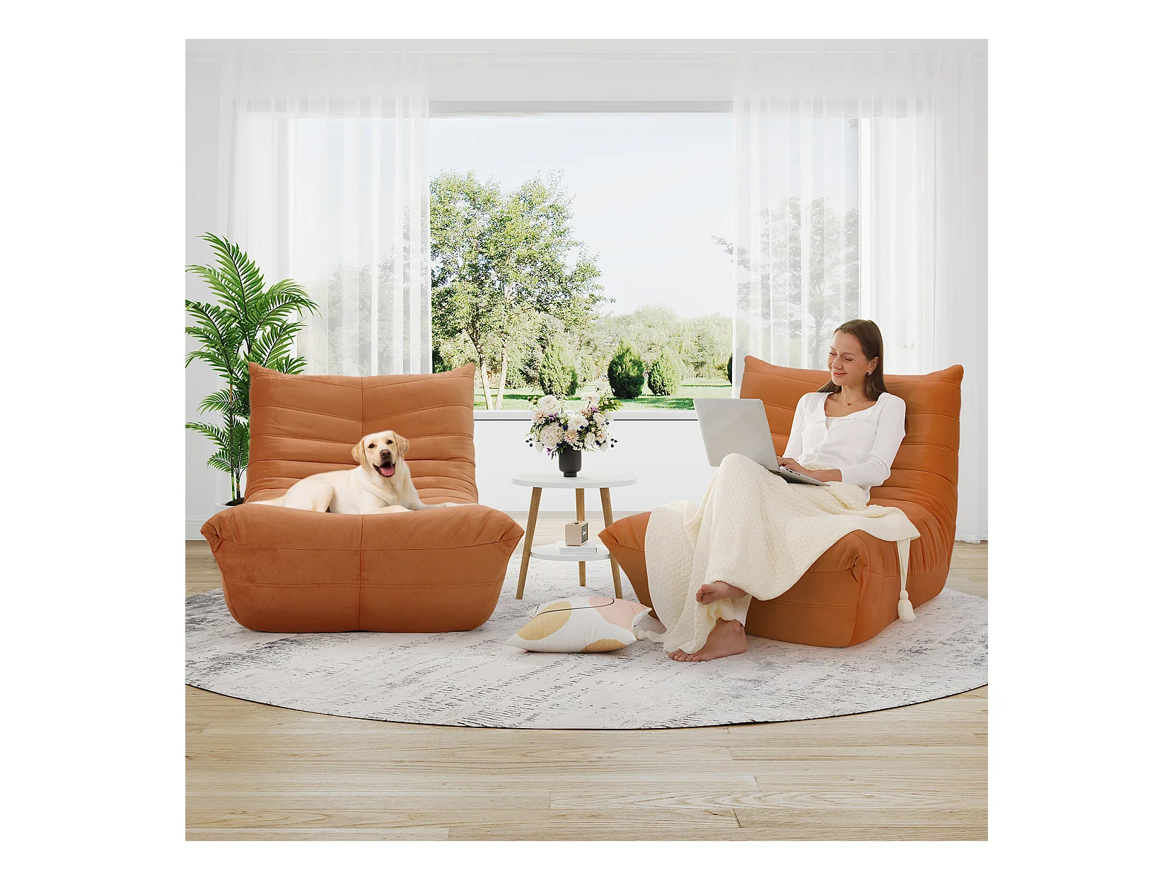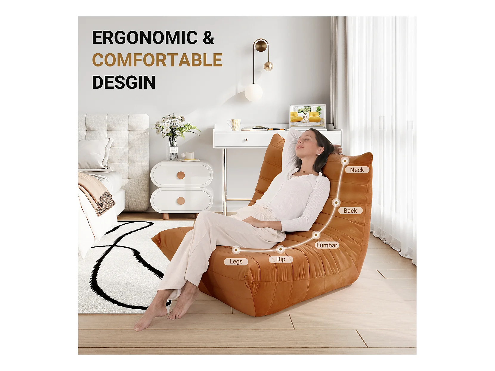 Zitzakstoel - Hoge dichtheid schuim - Zitzakbank - Woonkamerstoel - Fluweel - Beige