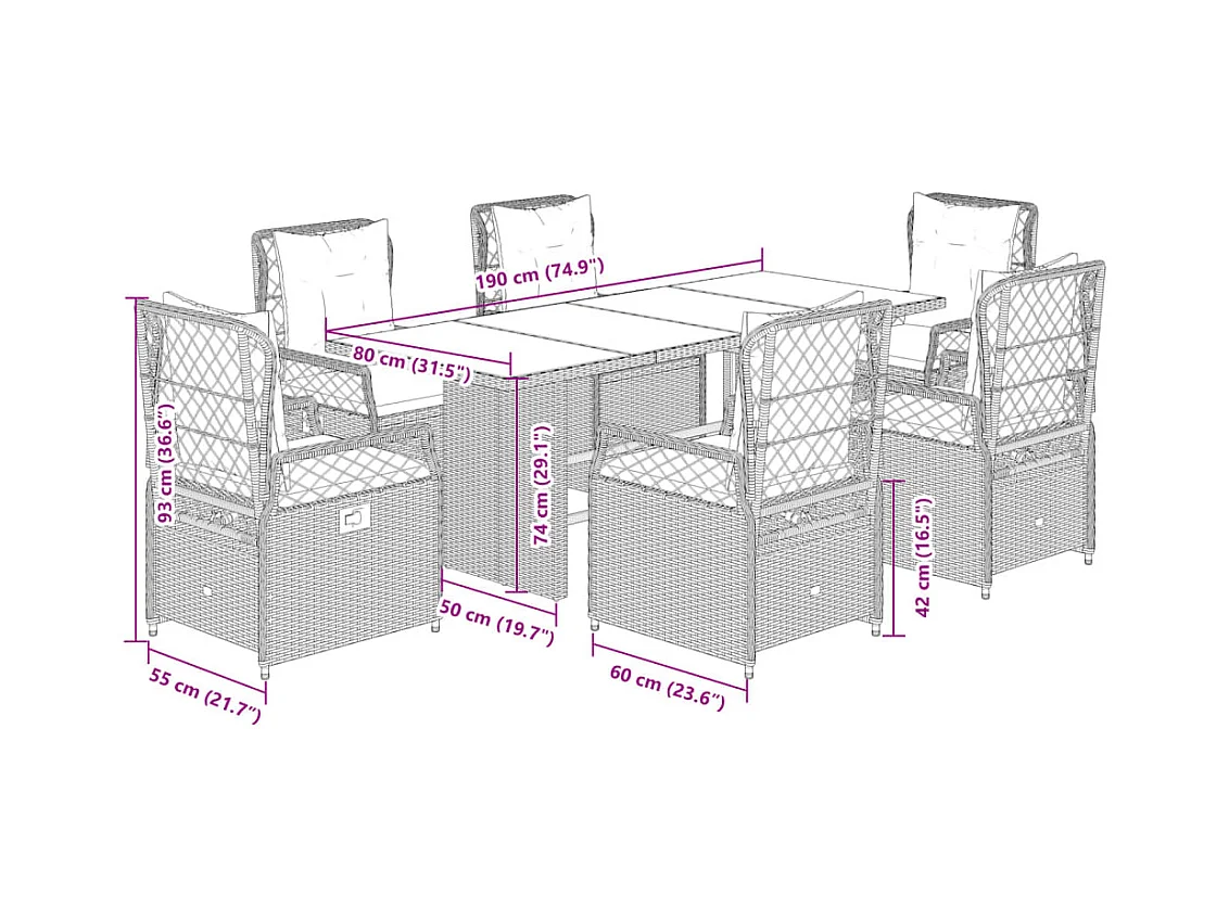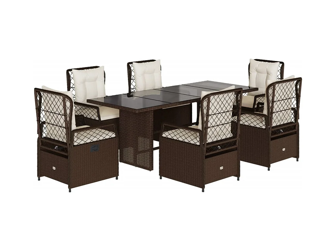 Anselm 7-delige Tuinset met kussens poly rattan bruin