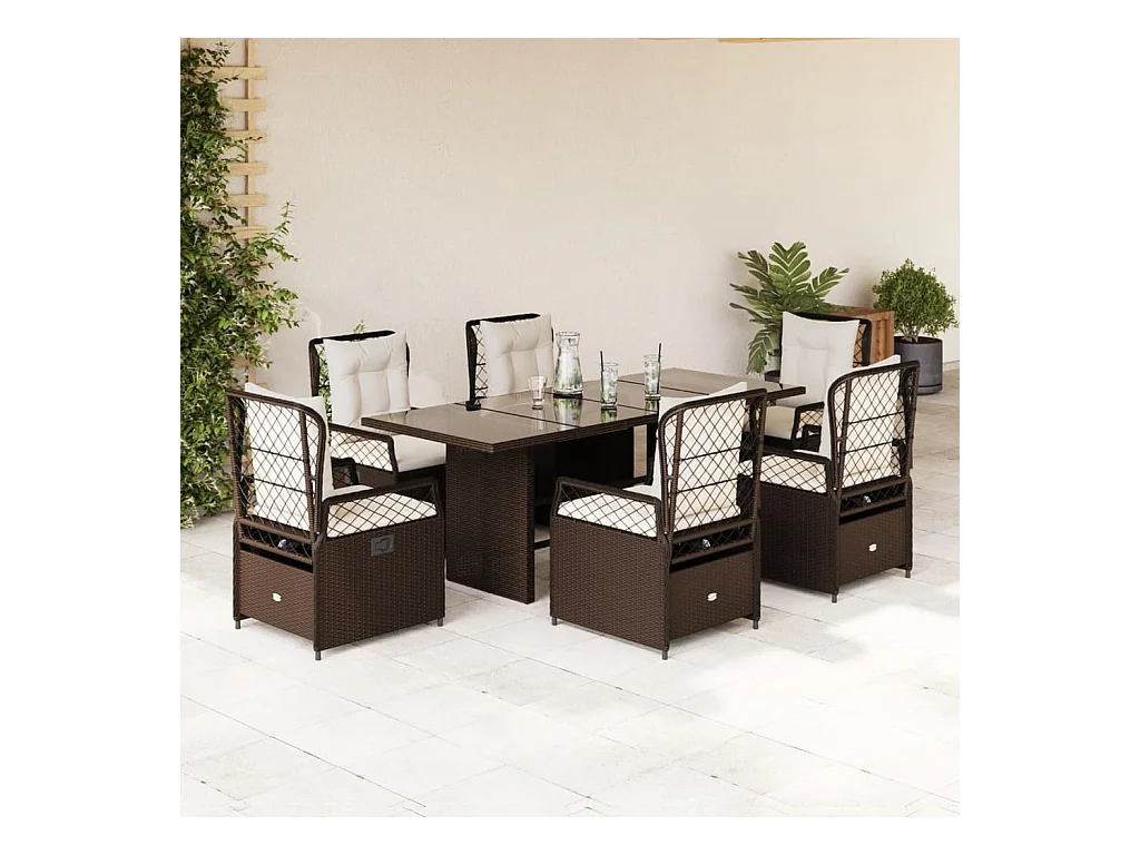 Bryndra 7-delige Tuinset met kussens poly rattan bruin