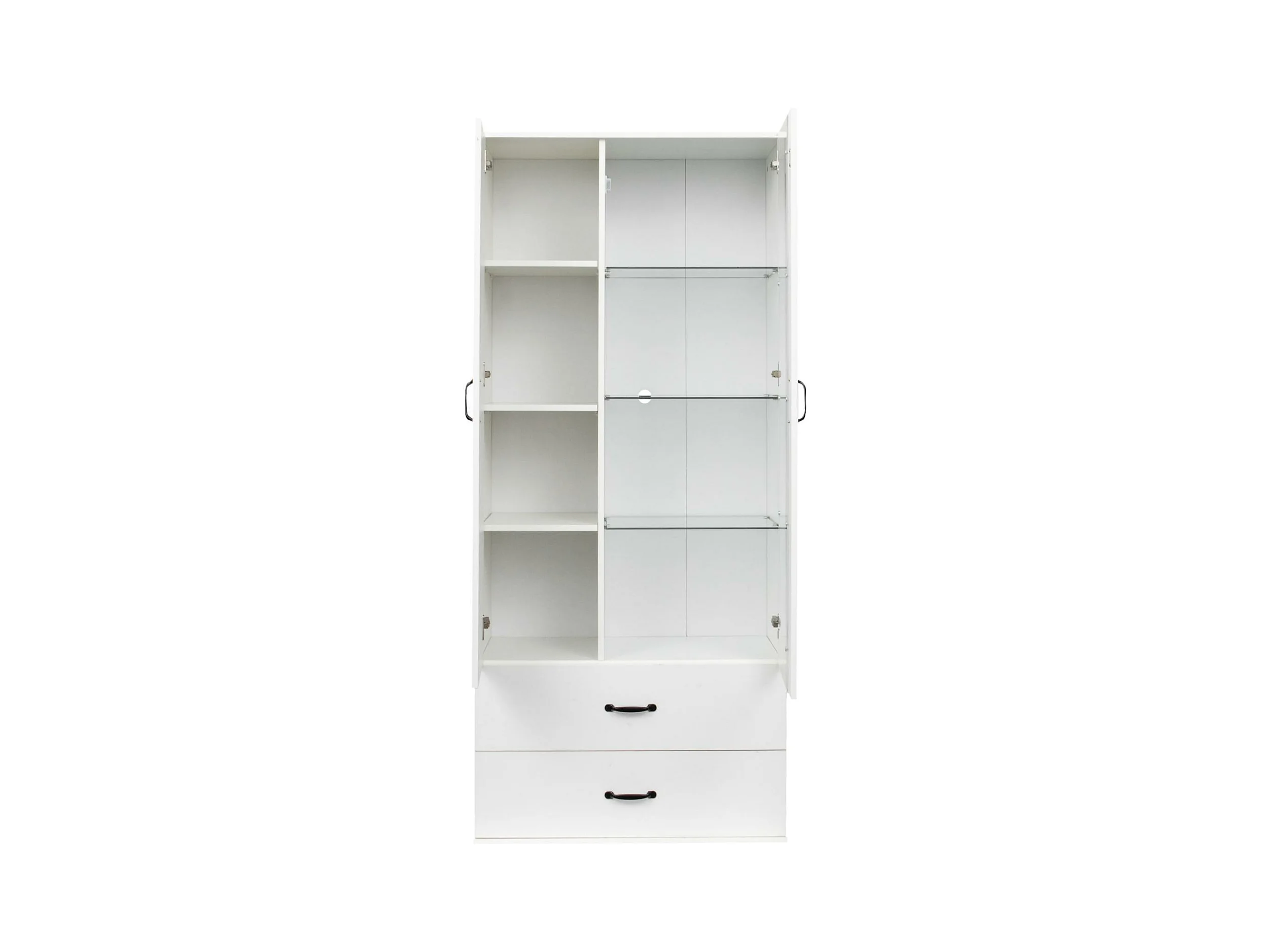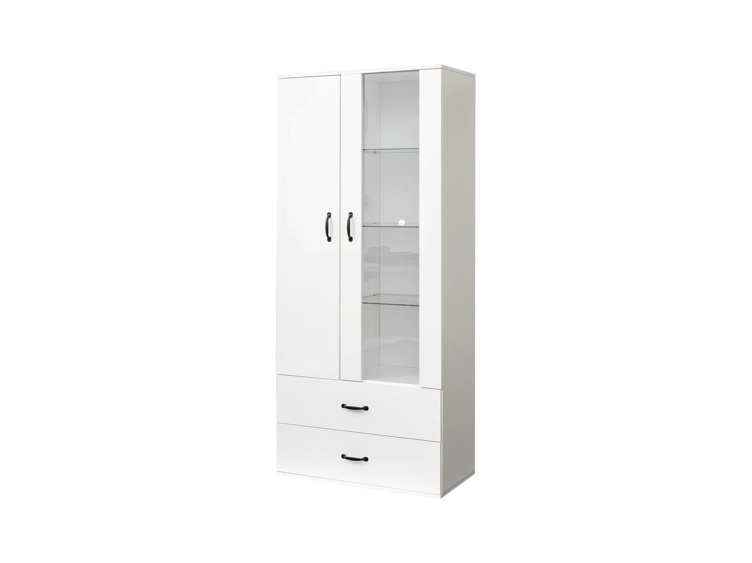 Vetrina con 2 ante e 2 cassetti e LED - Altezza 180 cm - Bianco
