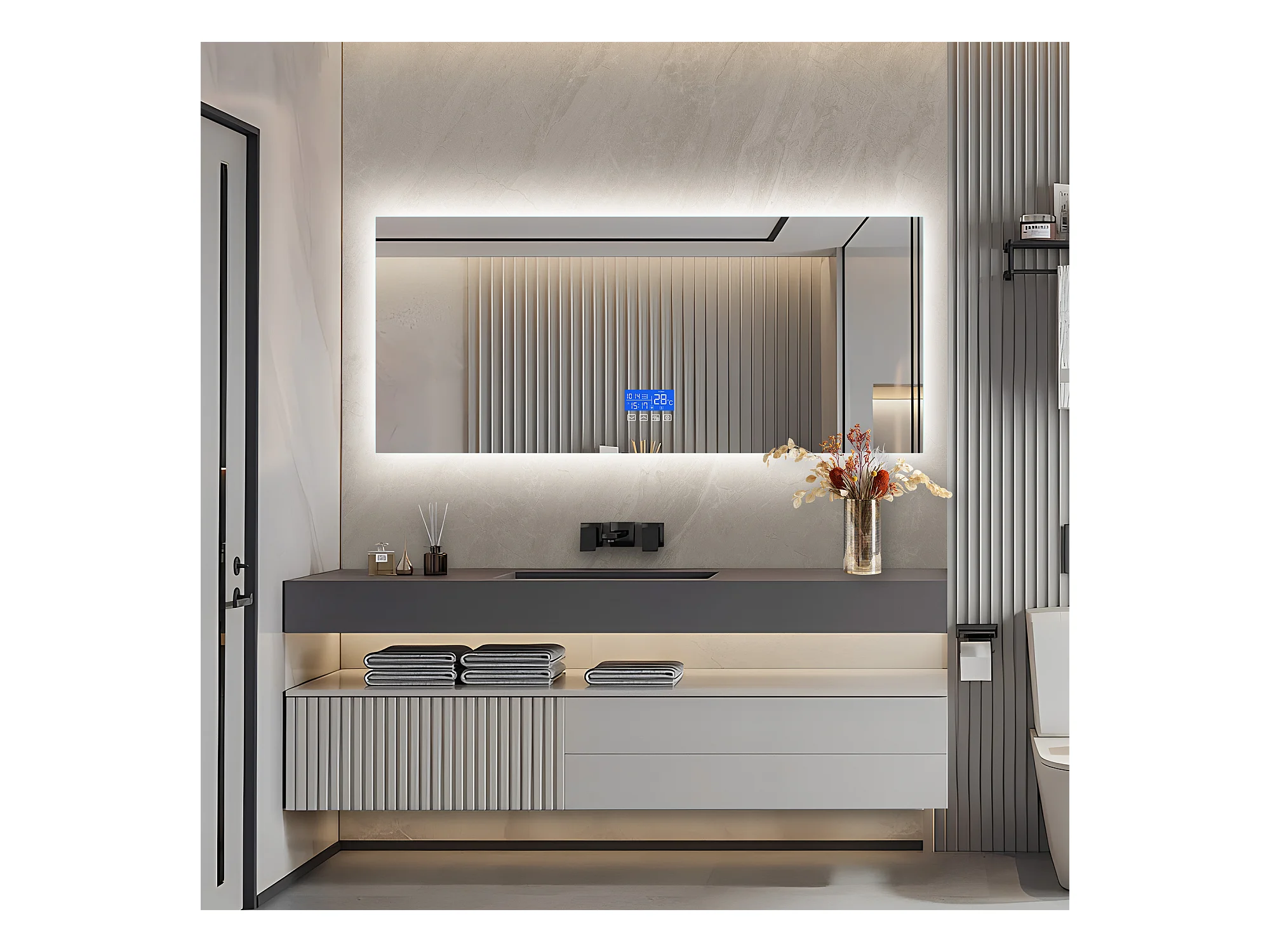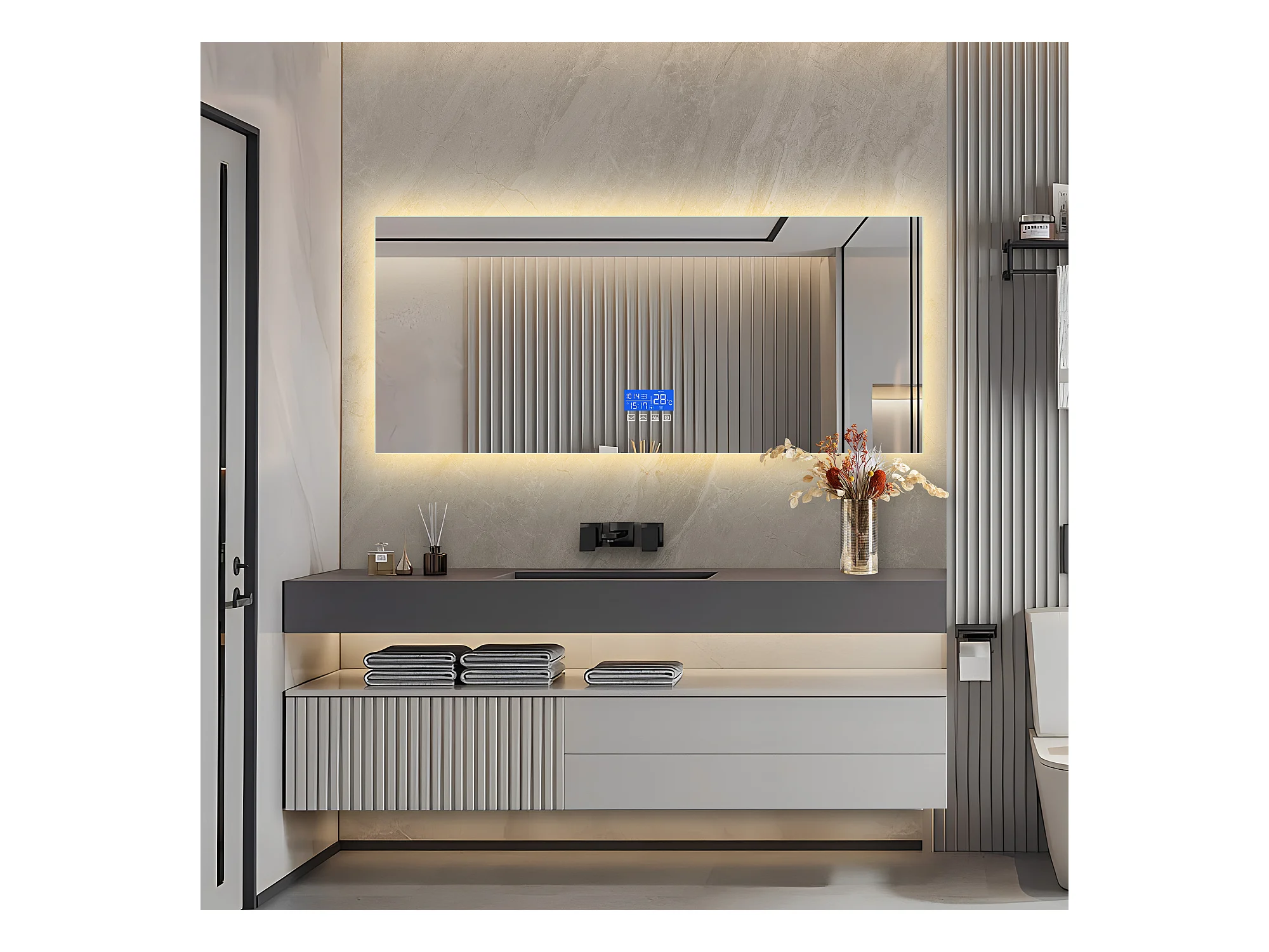 Vierkante badkamerspiegel 60x140 cm - LED, temperatuur, ontwaseming, 3 helderheidsniveaus, touch
