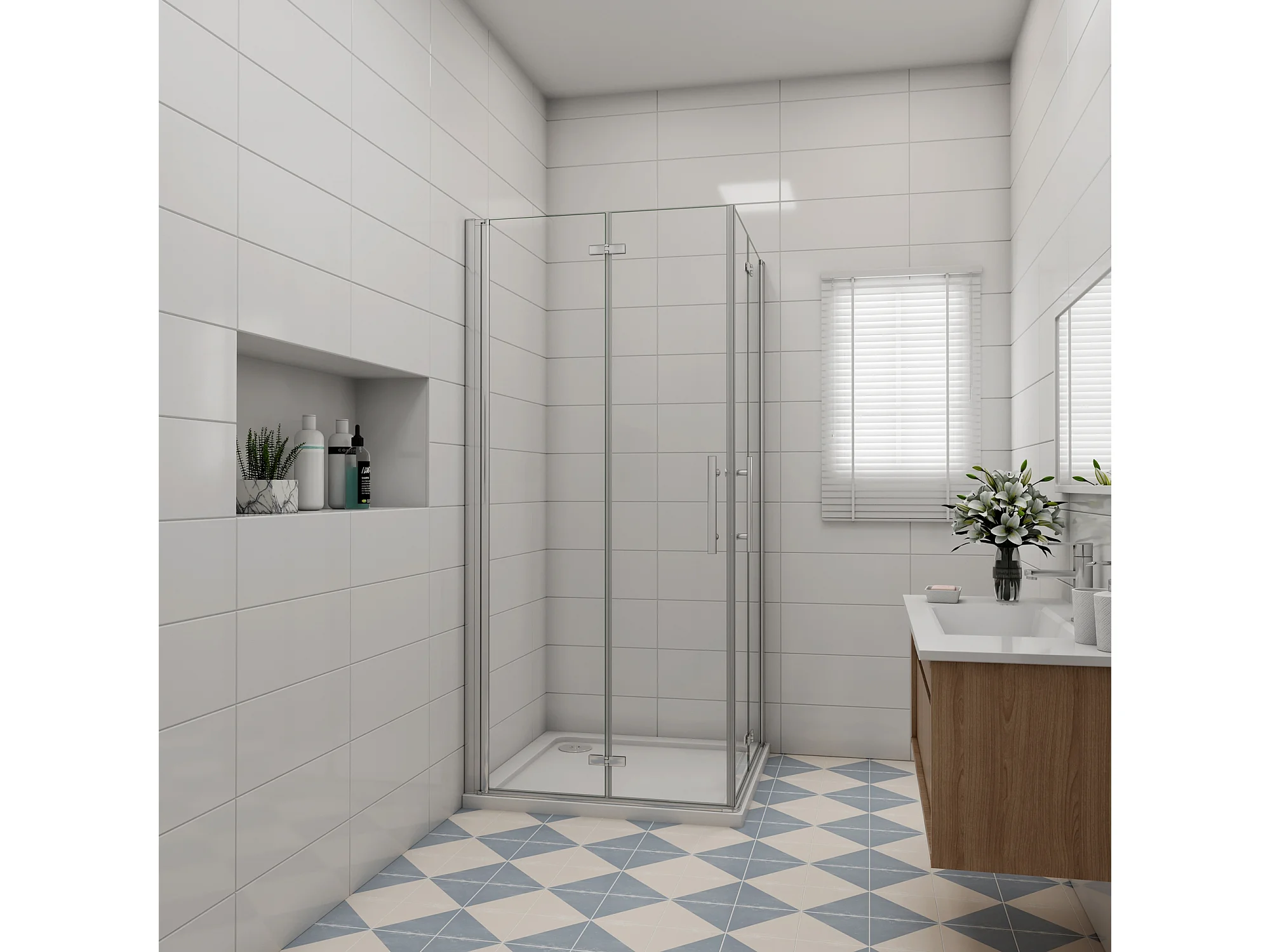 Vierkante douchecabine 76x76x185cm,dubbele vouwdeur,hoek instap,6mm veiligheidsglas nano coating