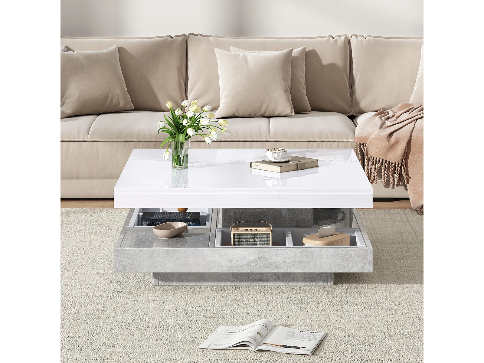 Vierkante salontafel met 360 graden rotatie - met opbergvak, grijs + wit