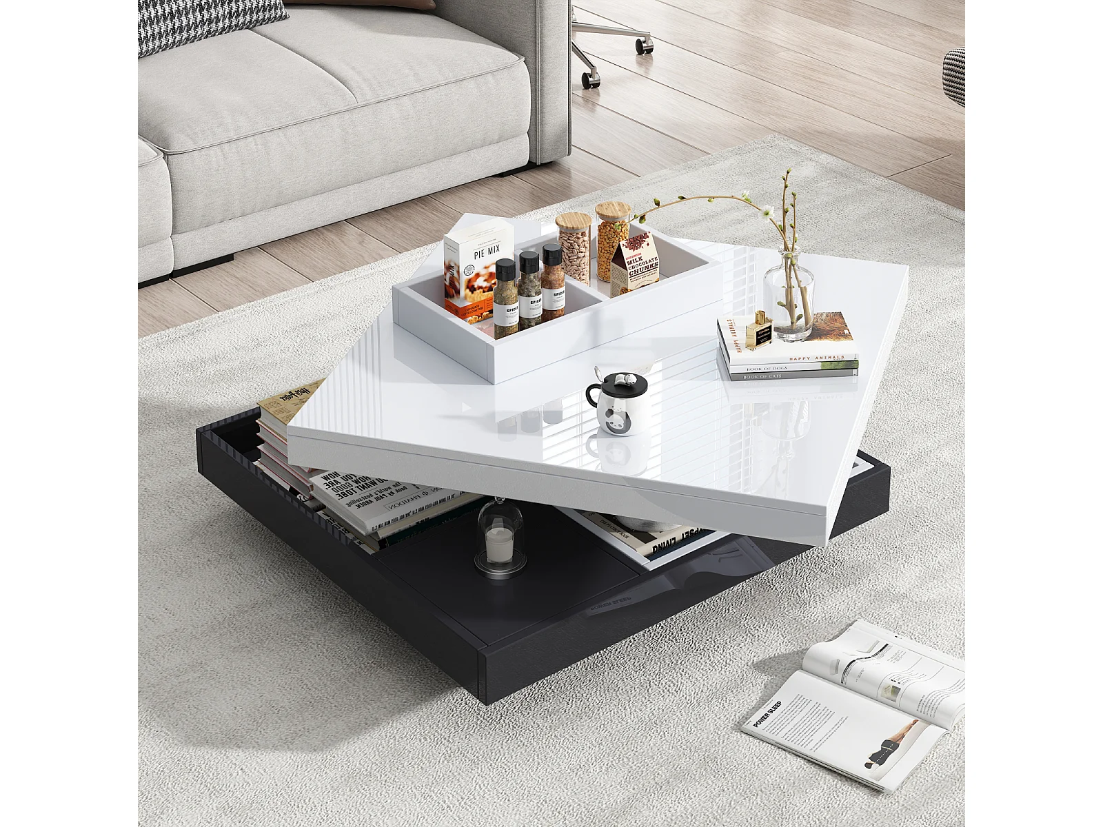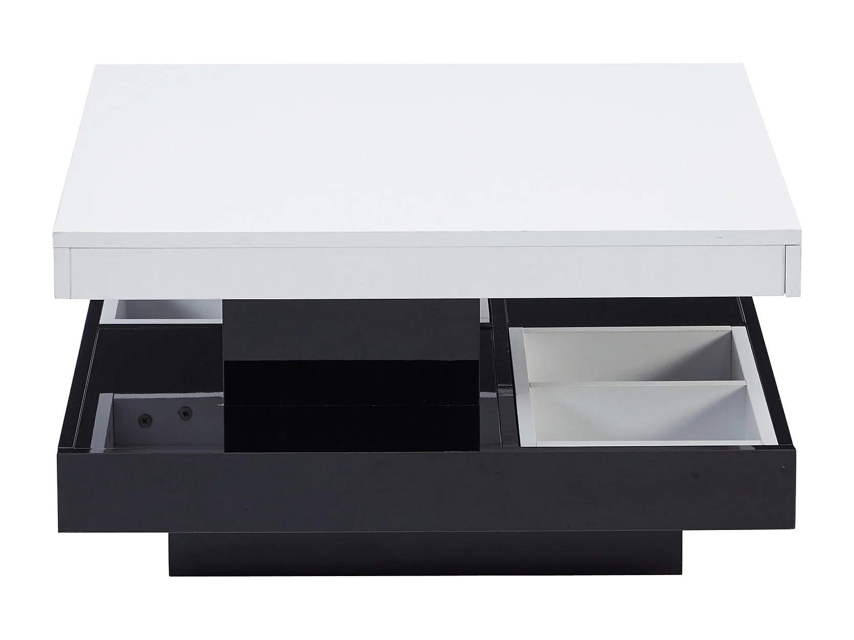Vierkante salontafel met 360 graden rotatie - met opbergvak, zwart + wit