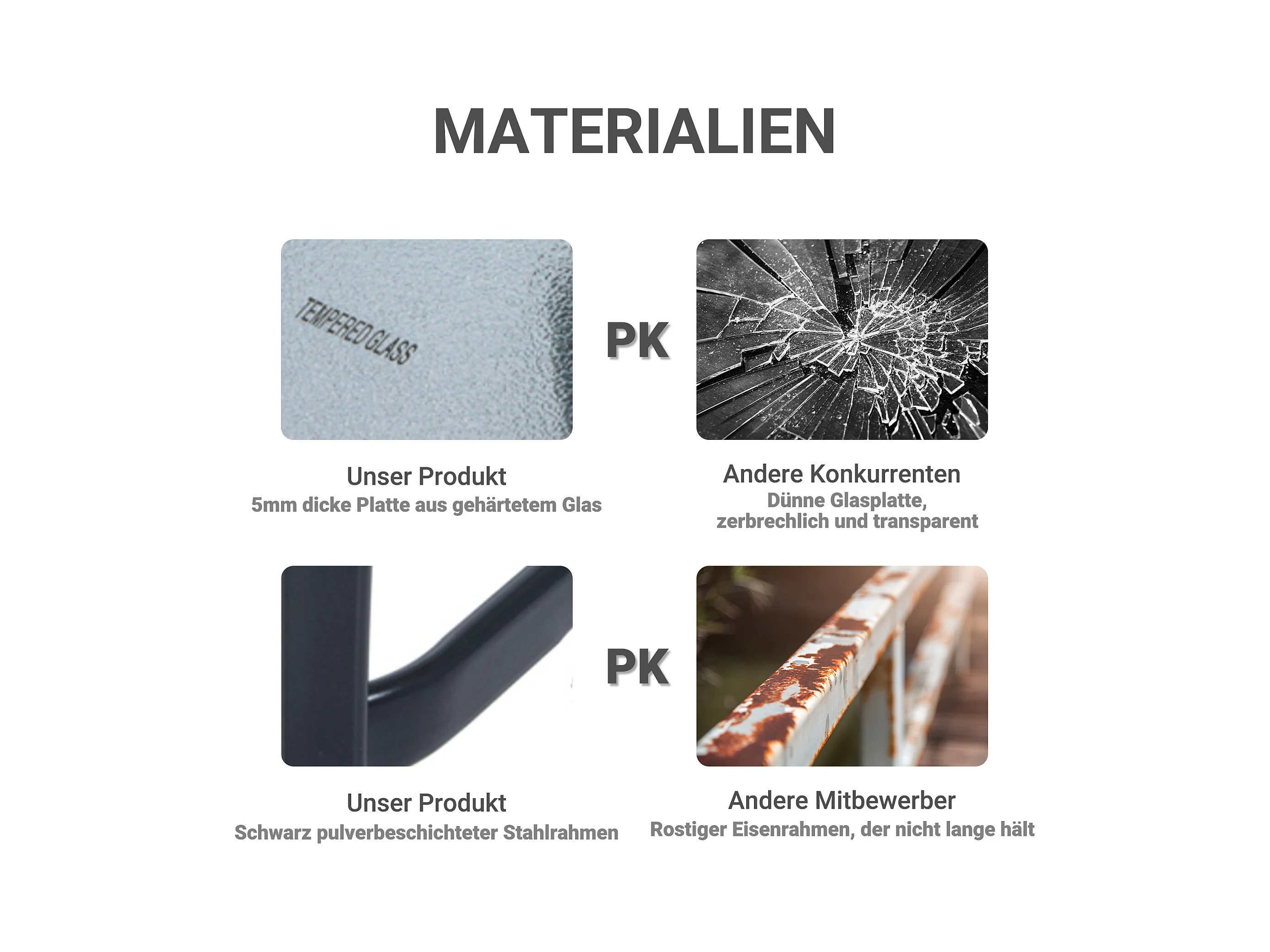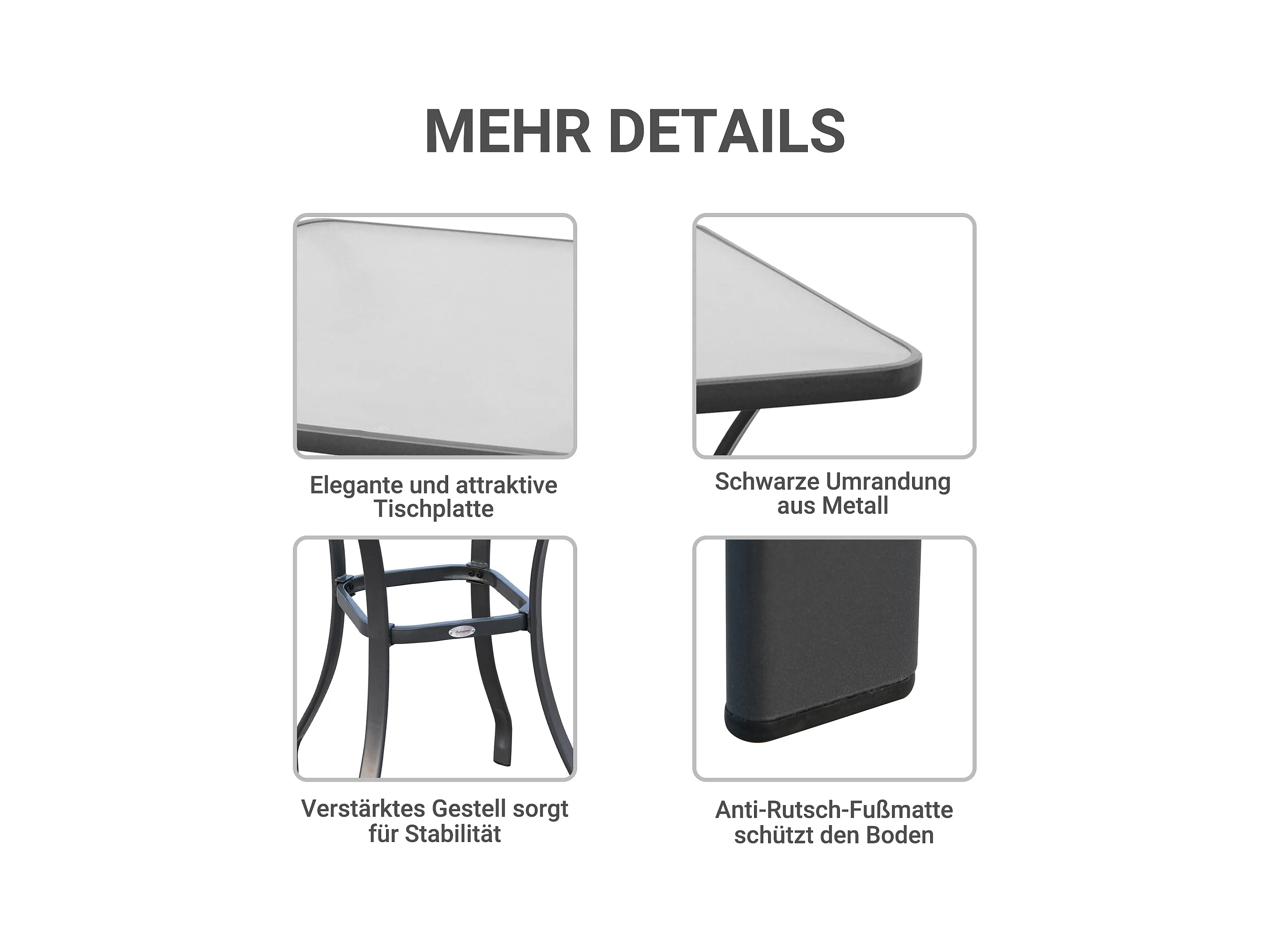 Vierkante tuintafel van gehard glas, weerbestendig, metaal, zwart (68,5x68,5x84cm)