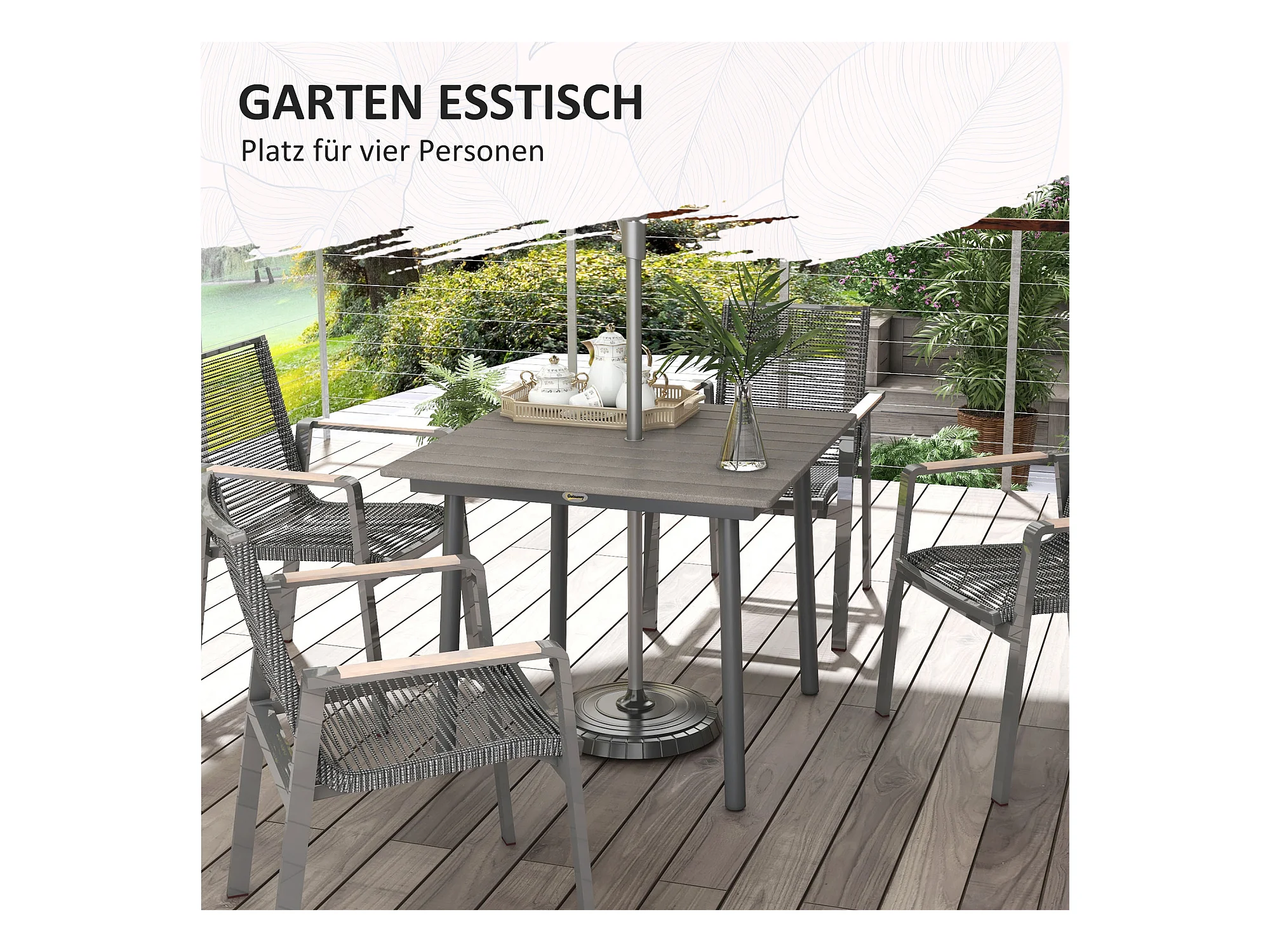 Vierkante tuintafel voor 4 personen, aluminium en HDPE, met parasolgat, donkergrijs (90x90x75cm)