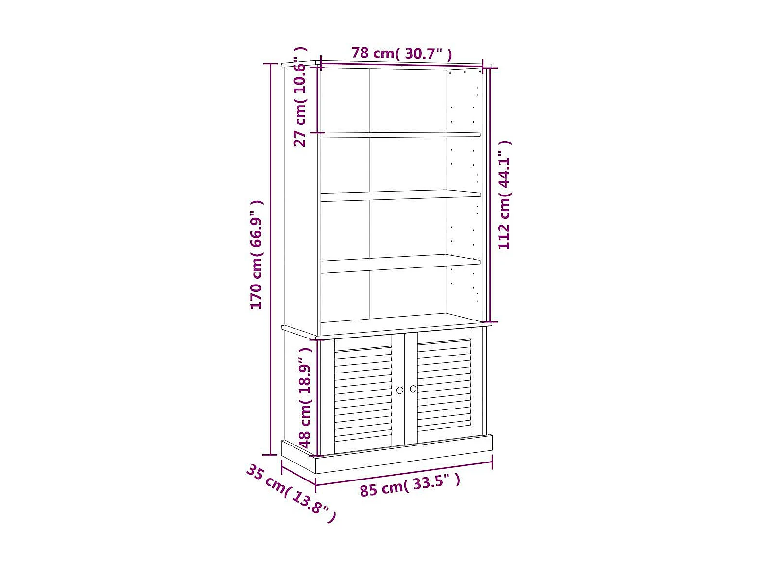 HAMAR Donkergrijze Boekenkast 85x35x112 cm Massief Dennenhout