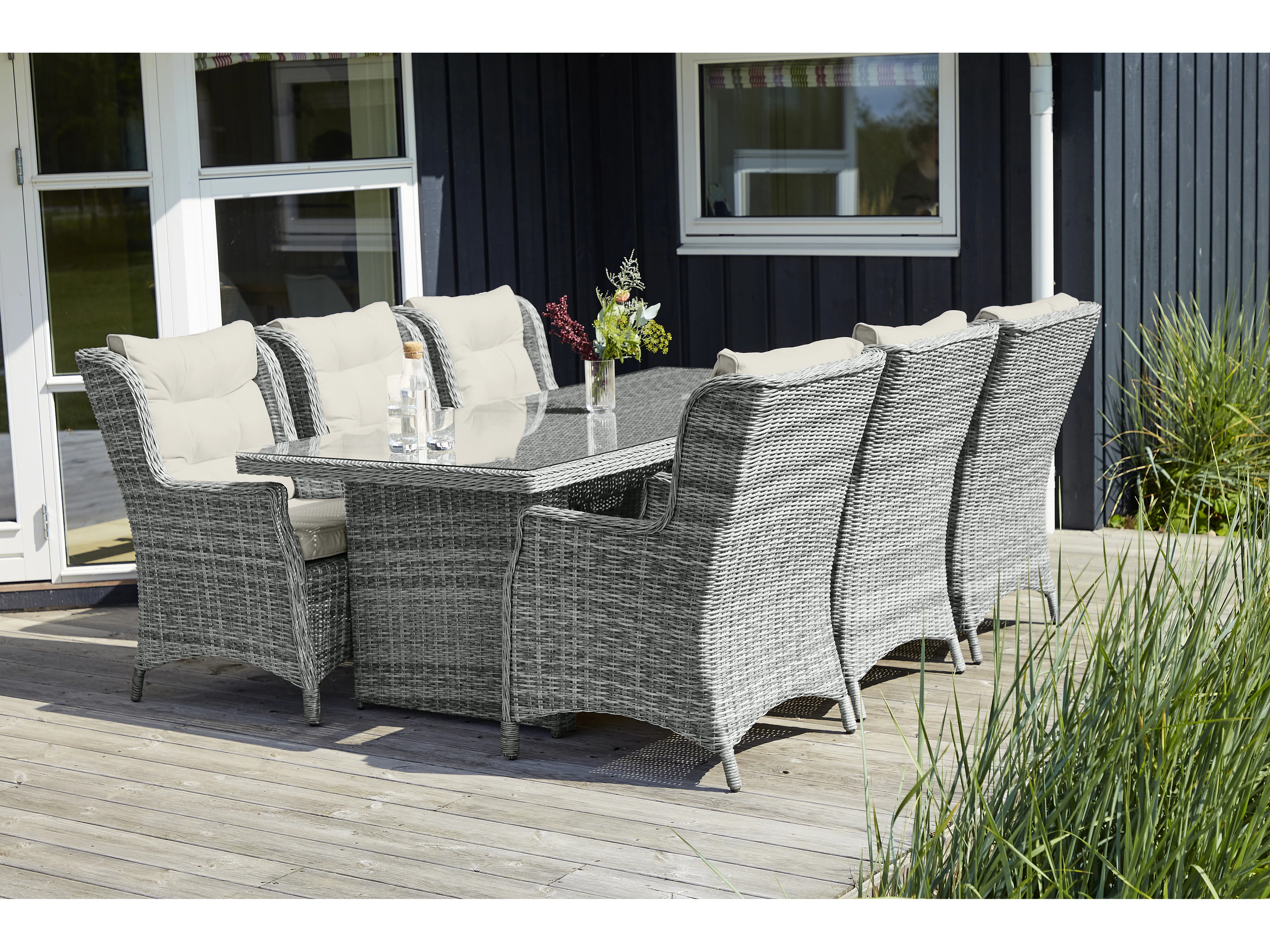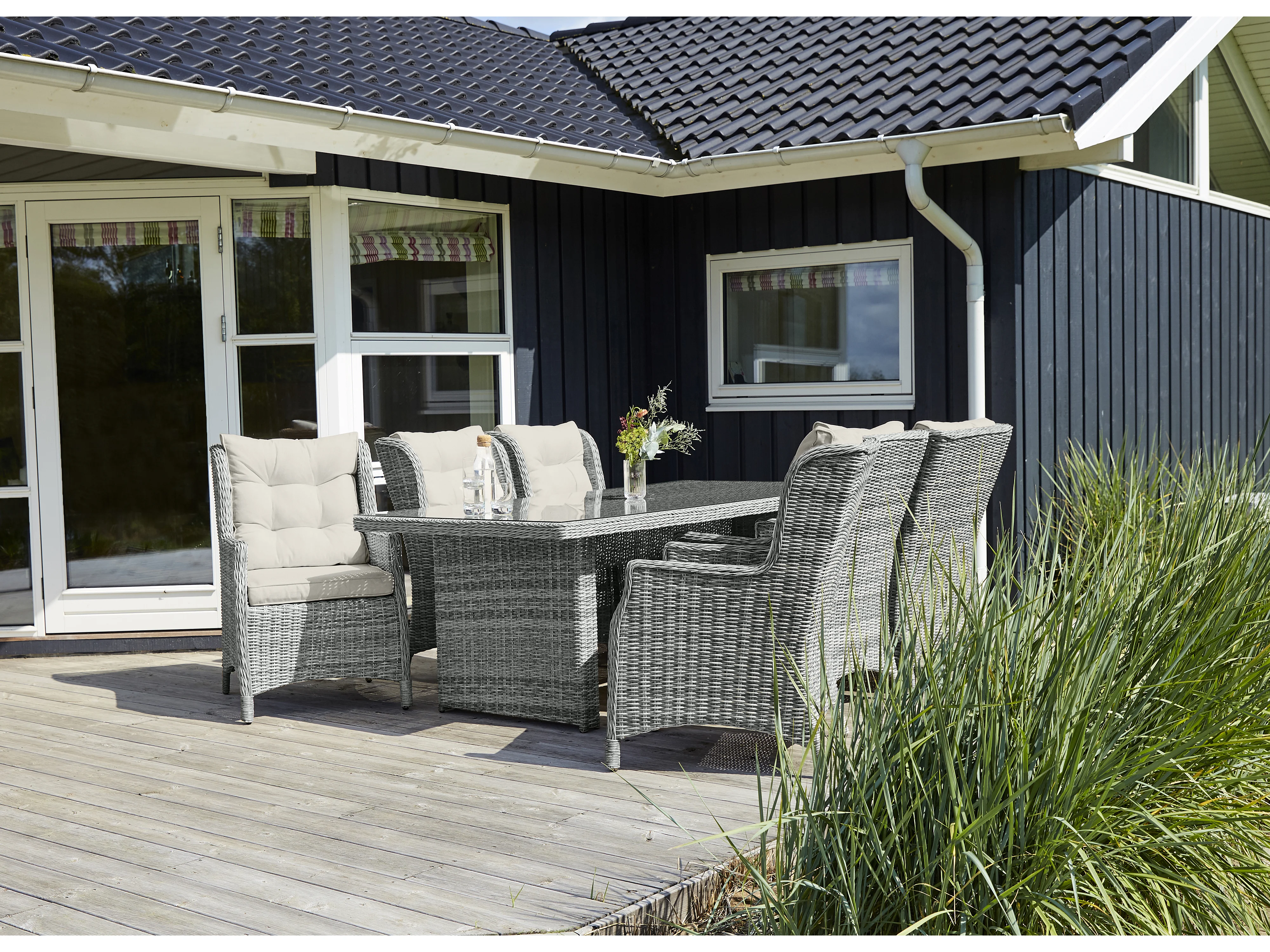 Vinor tuintafel 210 x 96 cm, met glasplaat, zand.