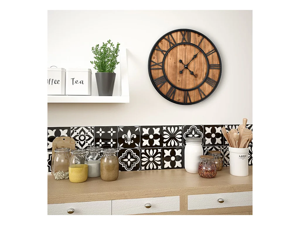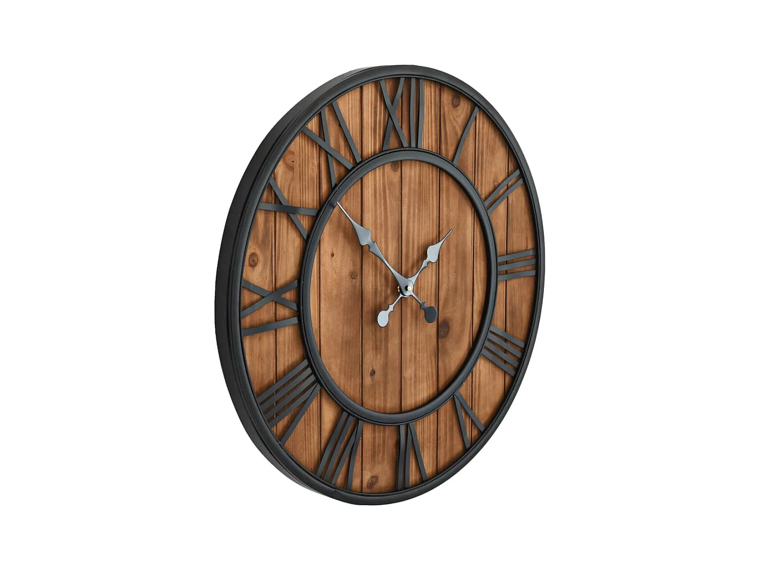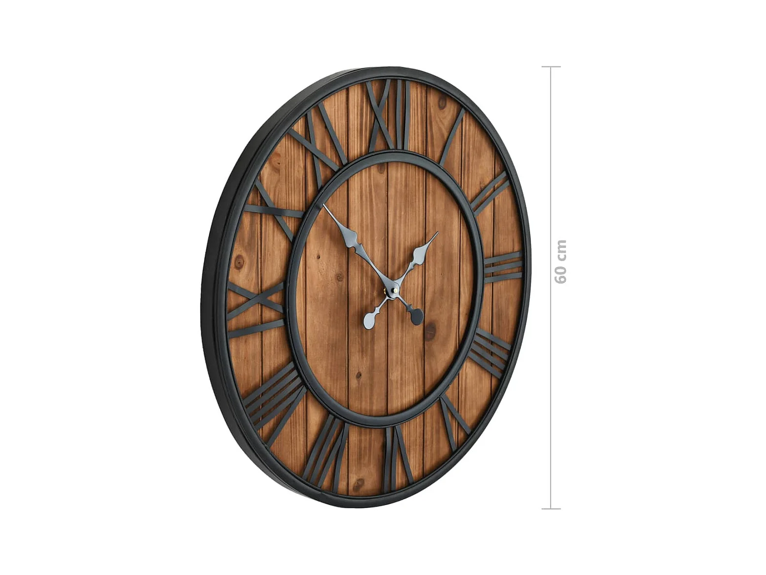 Vintage Quartz Wandklok Hout en Metaal 60 cm XXL