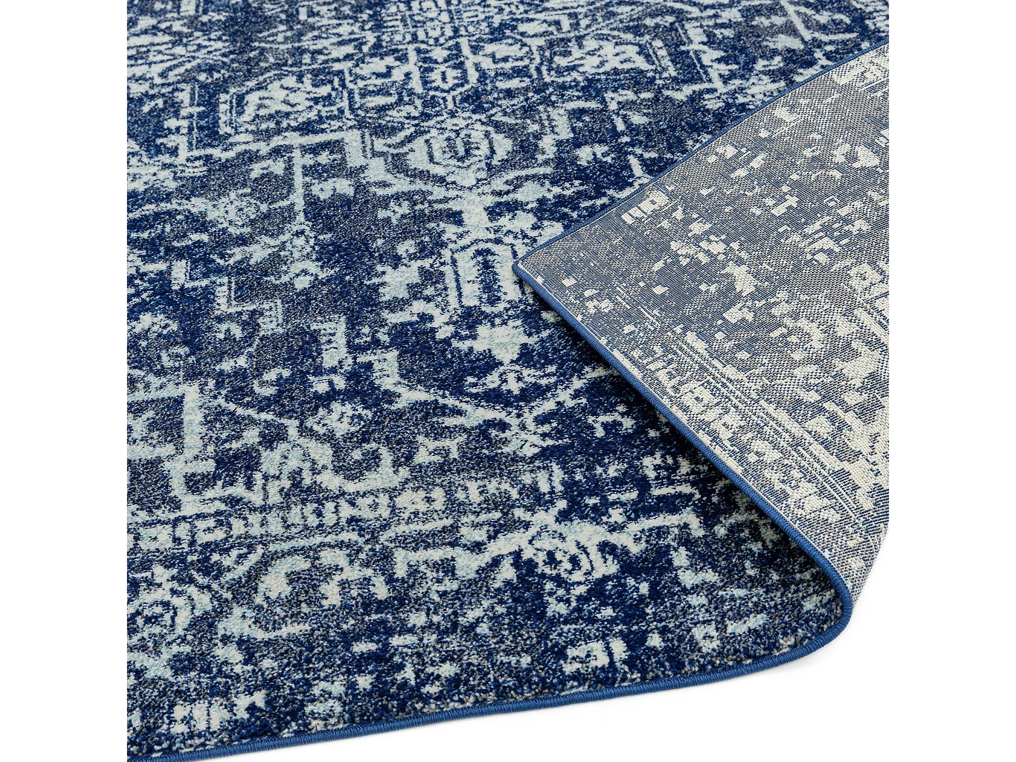 Vintage tapijt - 160x230cm - marineblauw, wit - Nova Antique