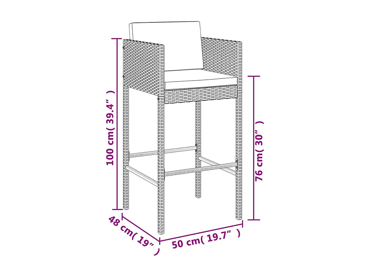 Mary 5-delige Tuinbarset met kussens poly rattan zwart
