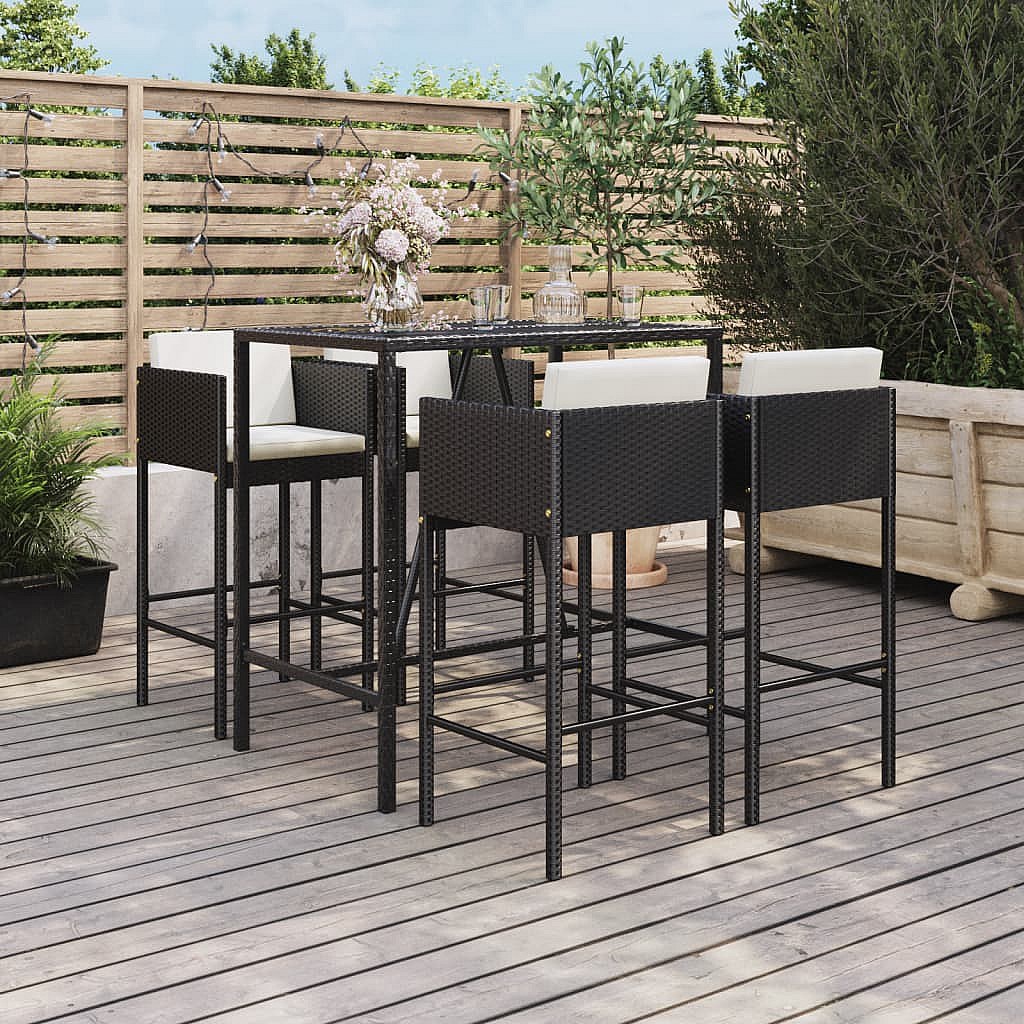 Danick 5-delige Tuinbarset met kussens poly rattan zwart