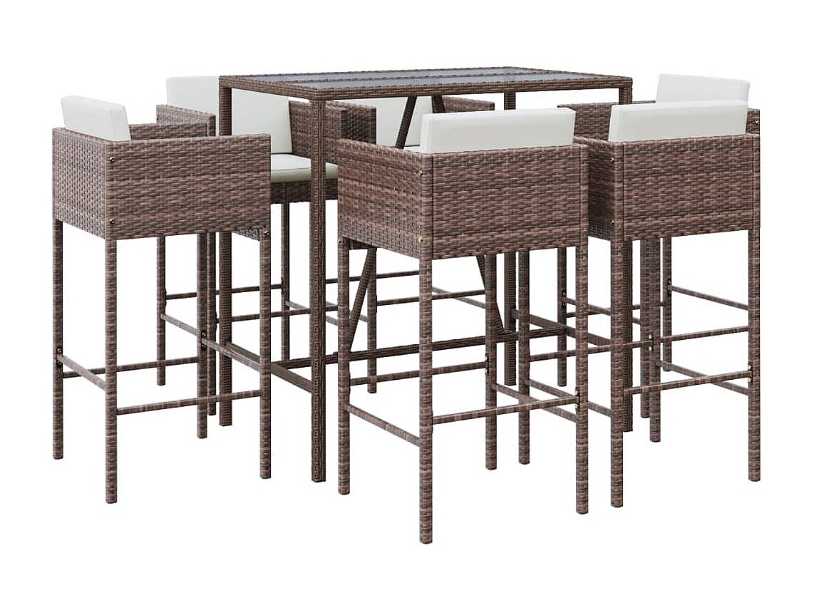 Mary 7-delige Tuinbarset met kussens poly rattan bruin