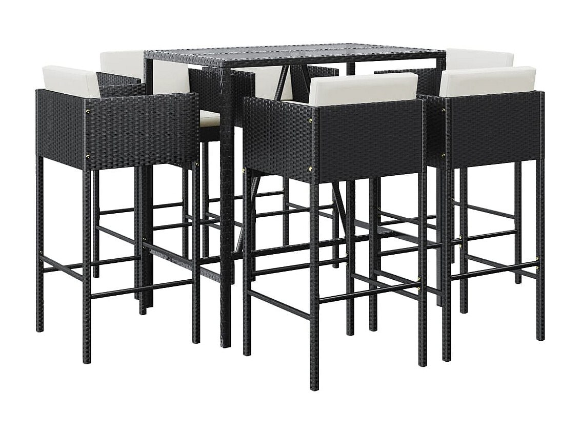 Danick 7-delige Tuinbarset met kussens poly rattan zwart