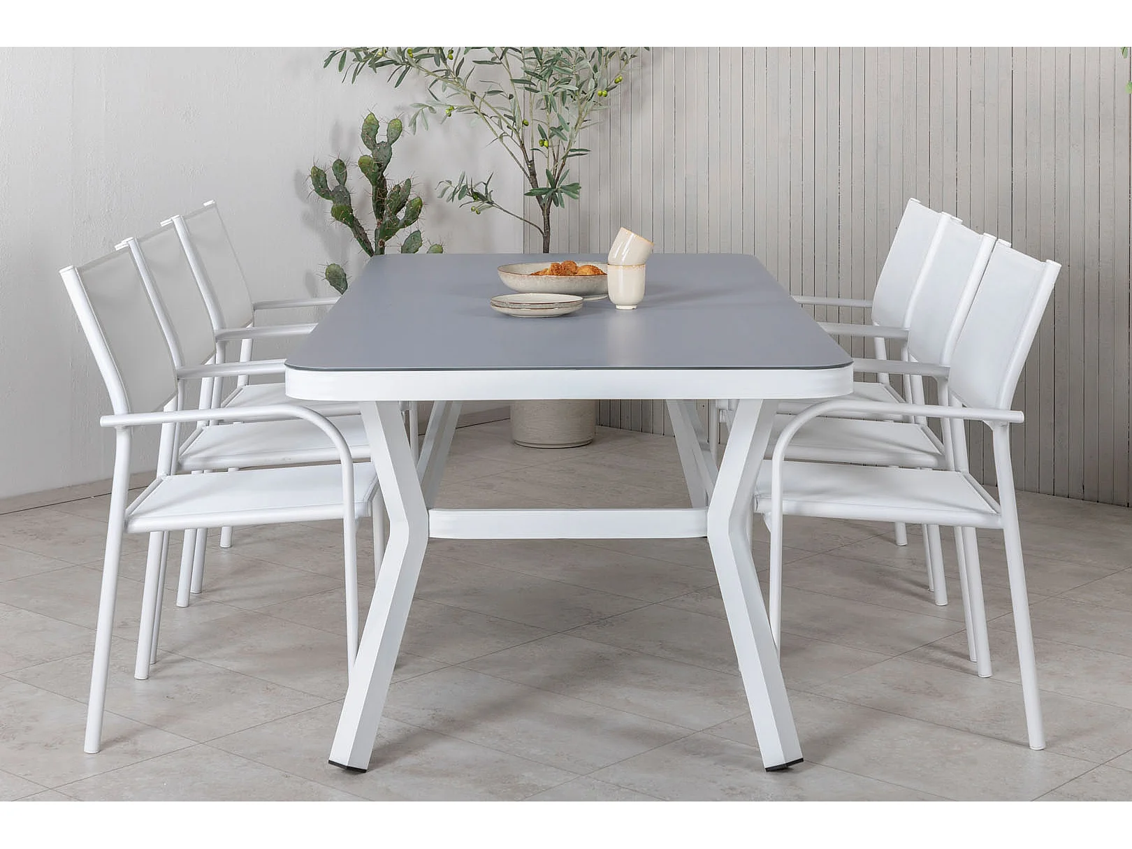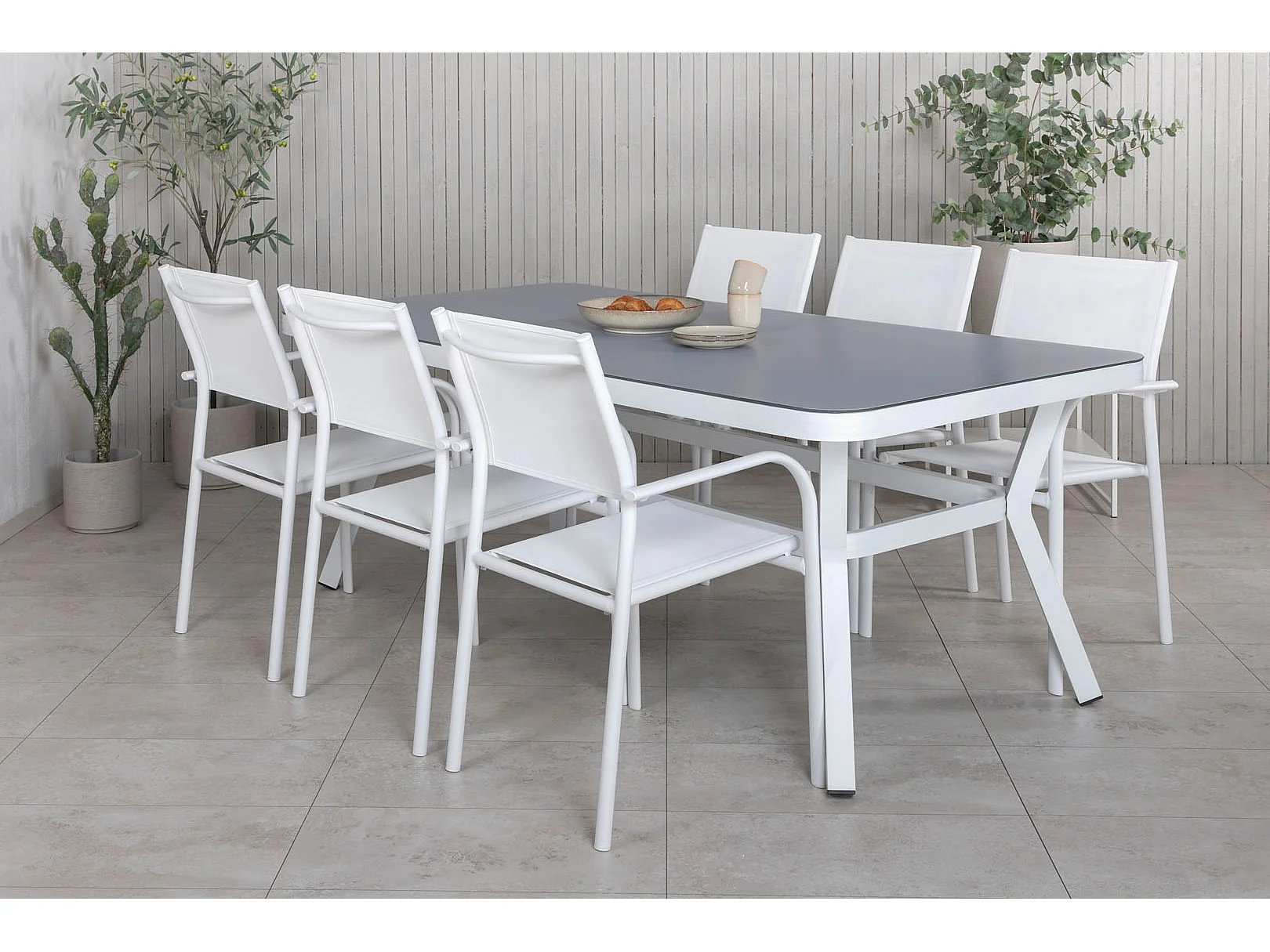 Virya tuinmeubelset tafel 100x200cm en 6 stoel Santorini wit, grijs.