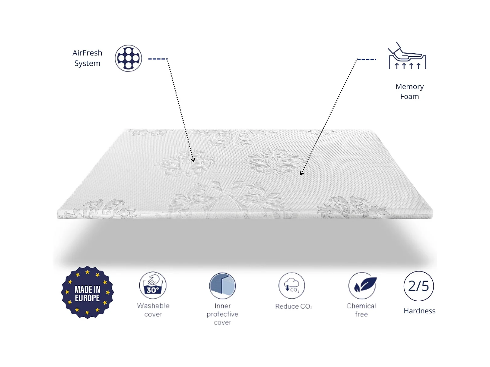 Visco-elastische topper 120x200 INFINIUM Hoogte 4 cm Geheugeneffect|Van hoes|Wasbaar