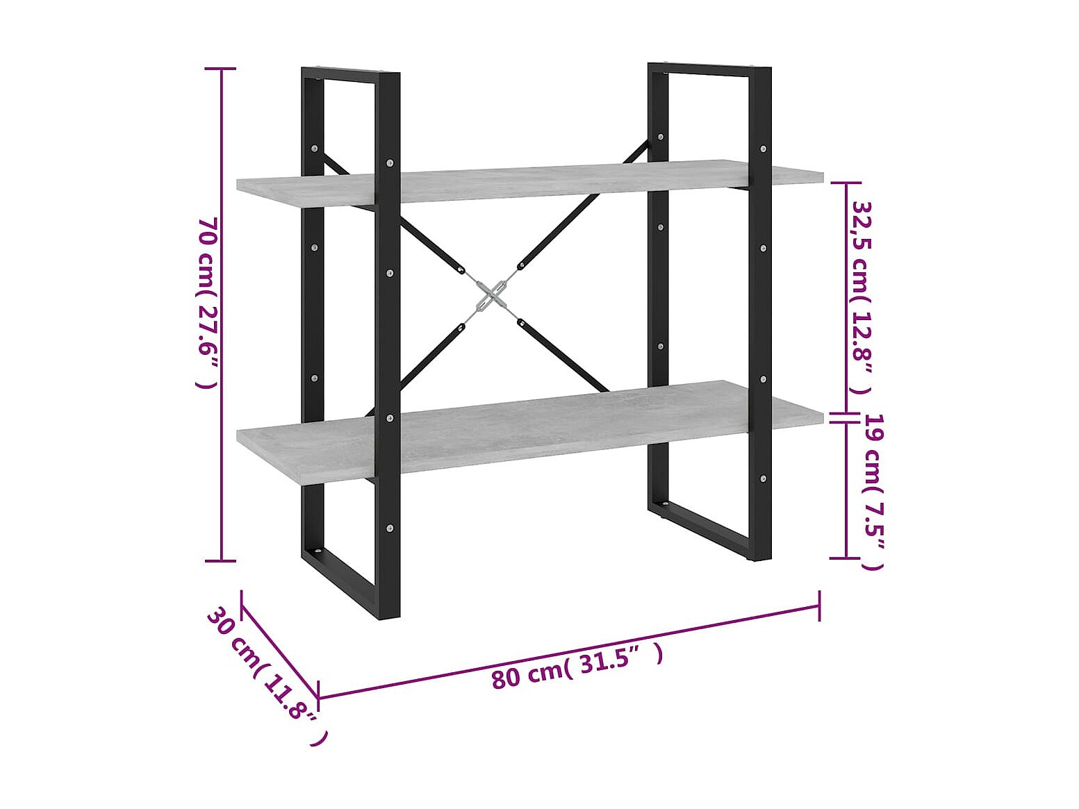 Vista Boekenkast met 2 schappen 80x30x70 cm spaanplaat betongrijs