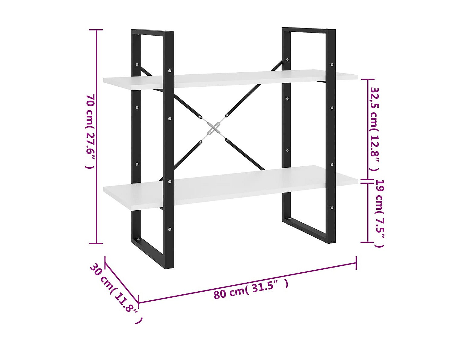 Vista Boekenkast met 2 schappen 80x30x70 cm spaanplaat wit